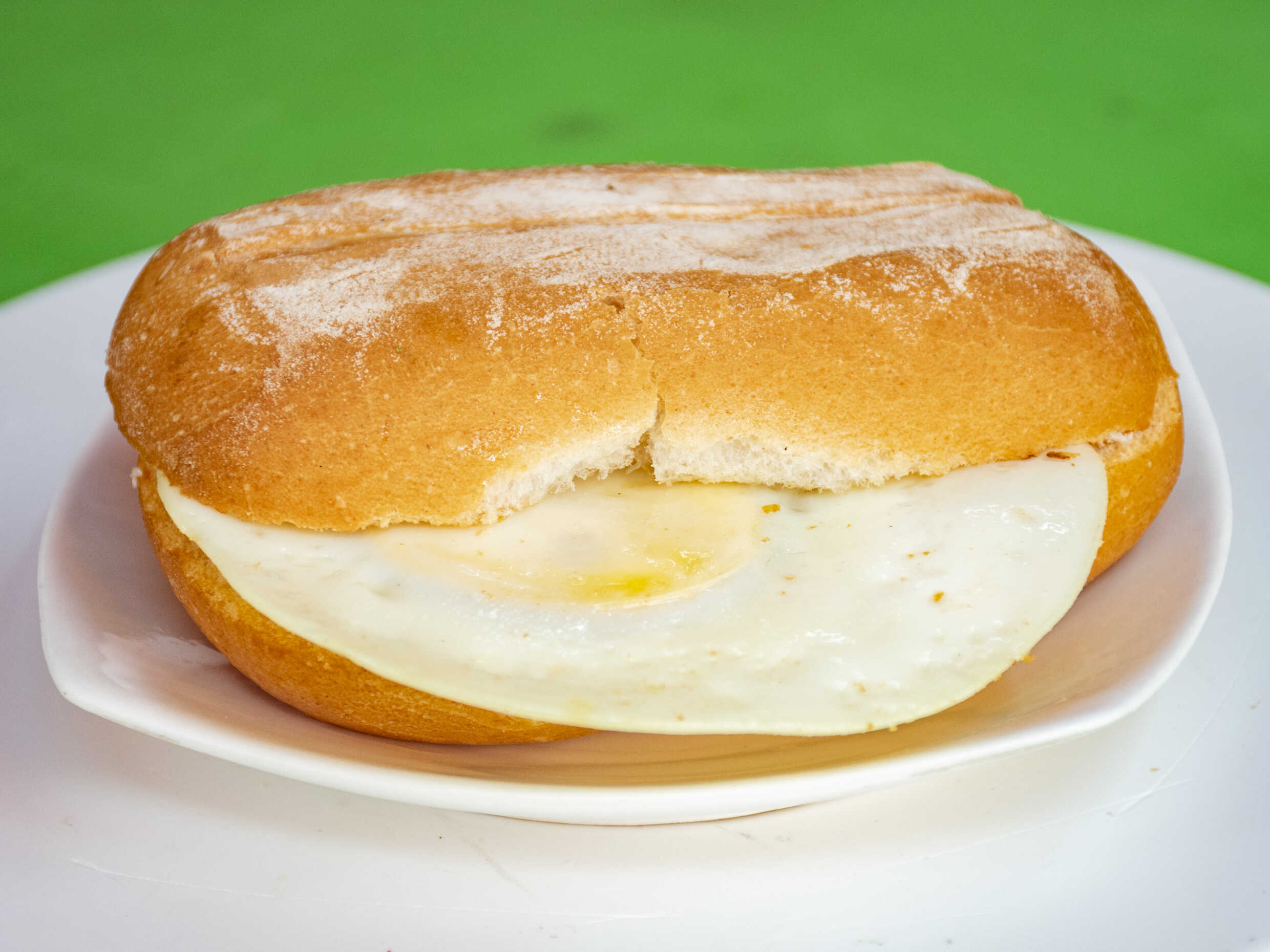 Pan ciabatta con huevo frito.