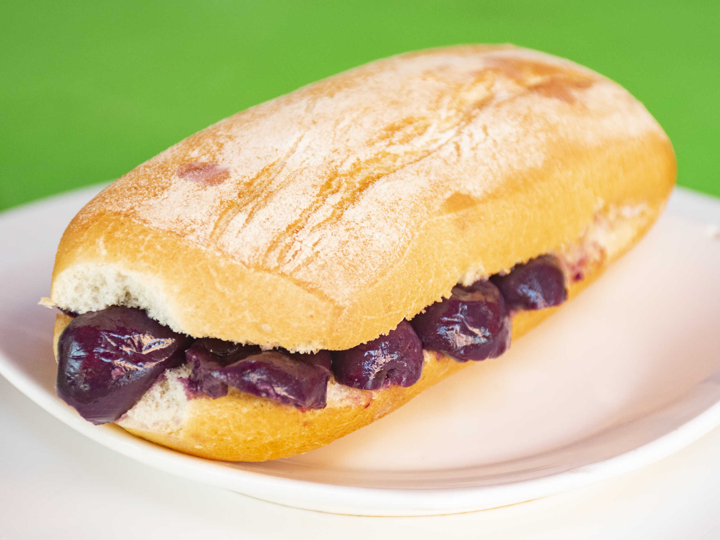 Pan ciabatta con mantequilla clásica y mermelada de fresa.