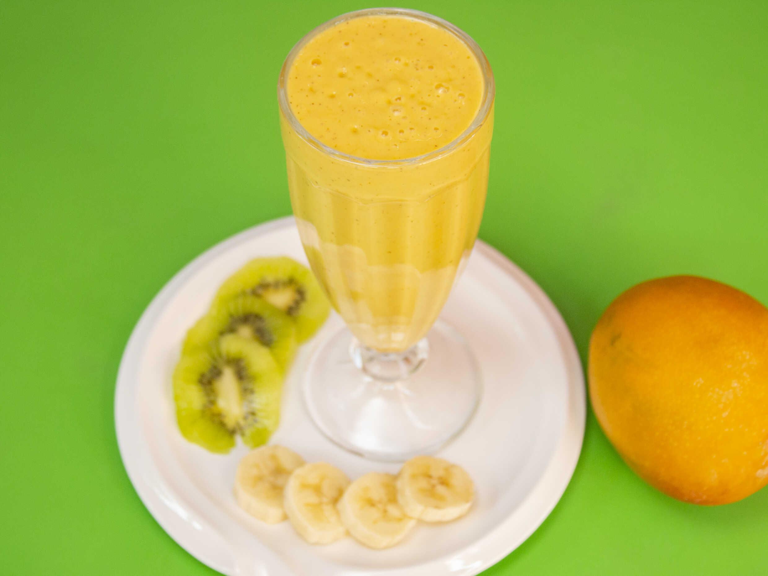 Licuado espeso de plátano, kiwi, mango y leche 12oz.