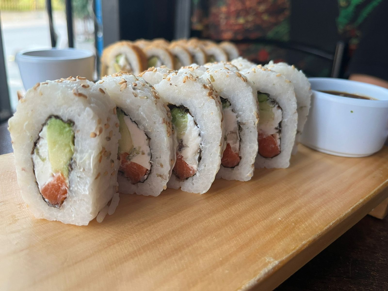 12 piezas de maki de Queso crema, palta y tucha salmoneada.