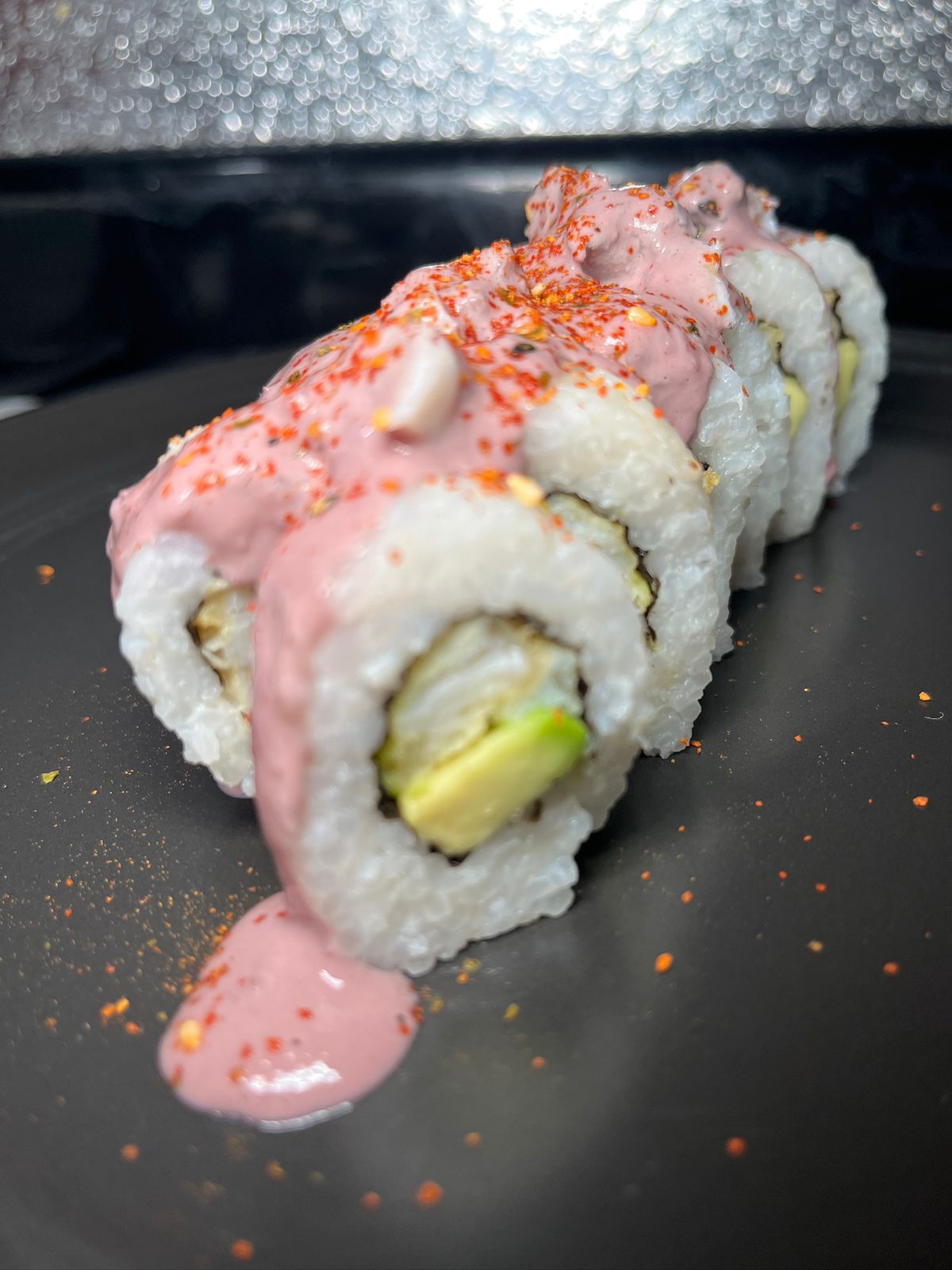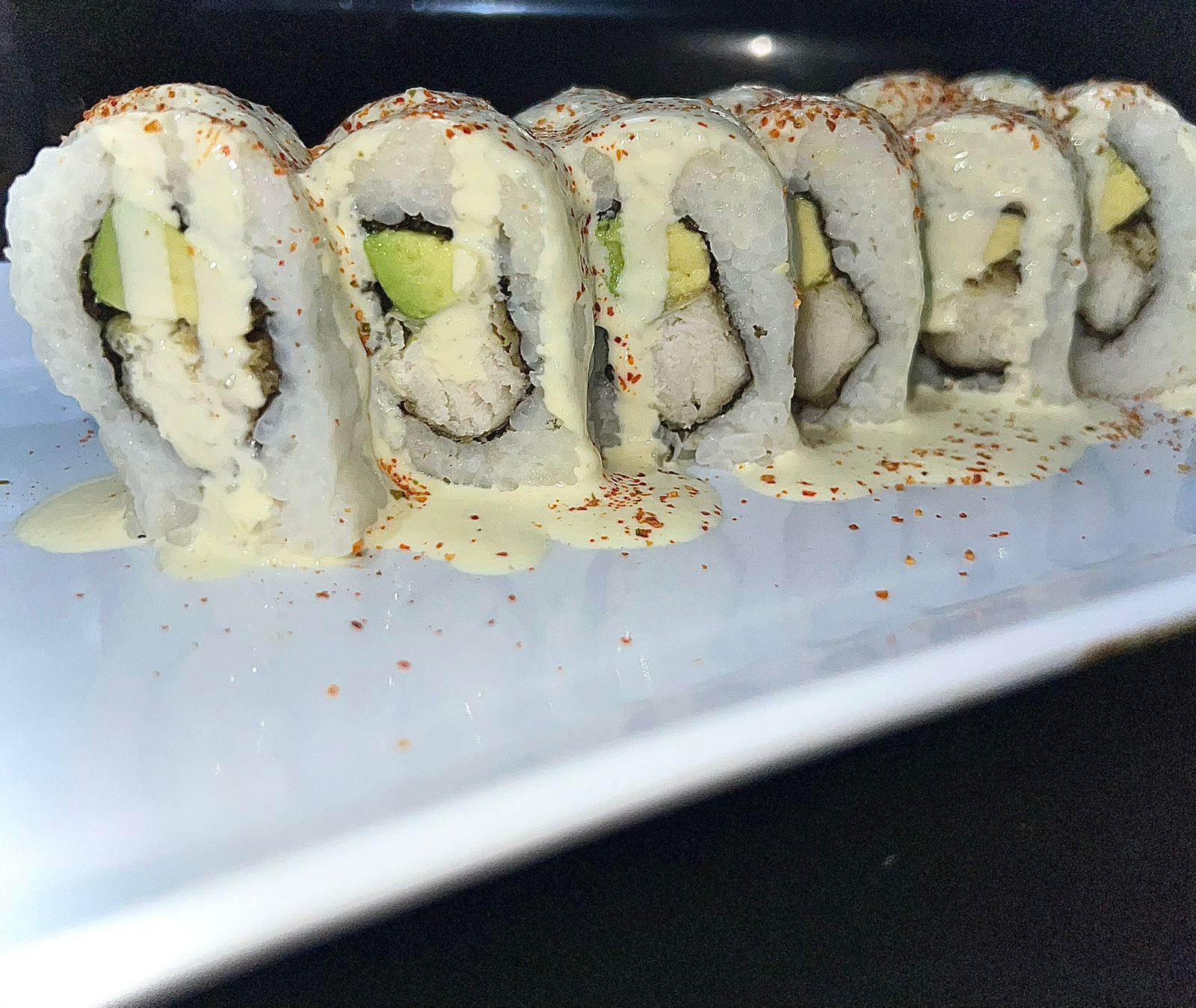 12 piezas de Maki de Palta y pescado furai bañado con salsa acevichada.