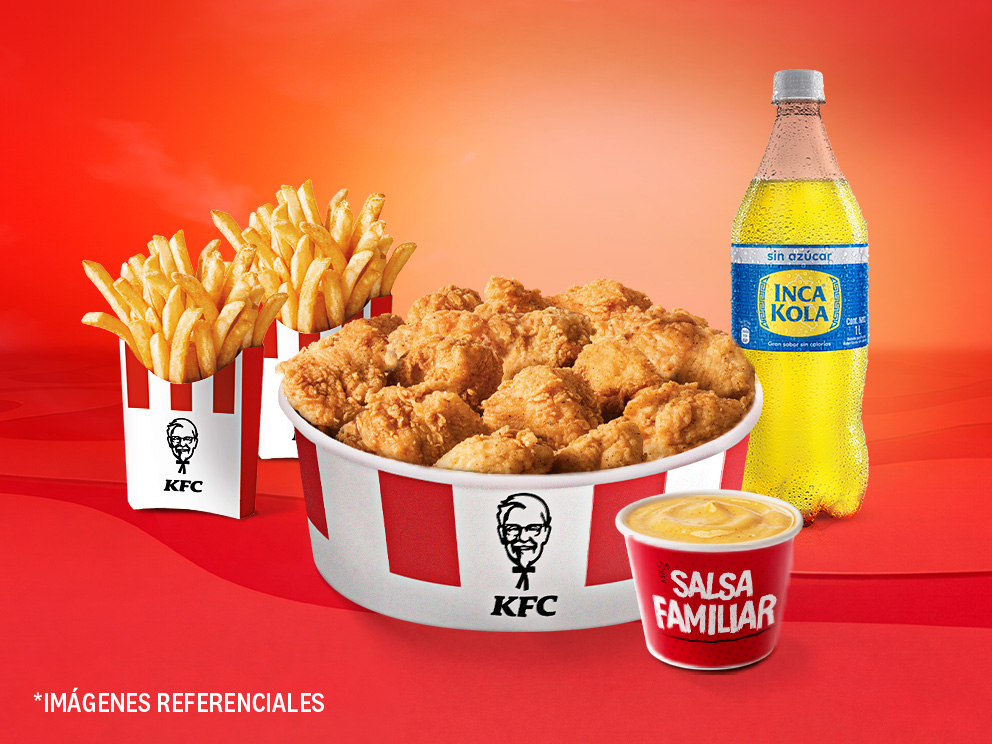 10 Piezas de Pollo, 6 Nuggets o Hot Wings o 1 Popcorn Chicken, 1 Complemento Familiar y 1 Bebida 1.5L