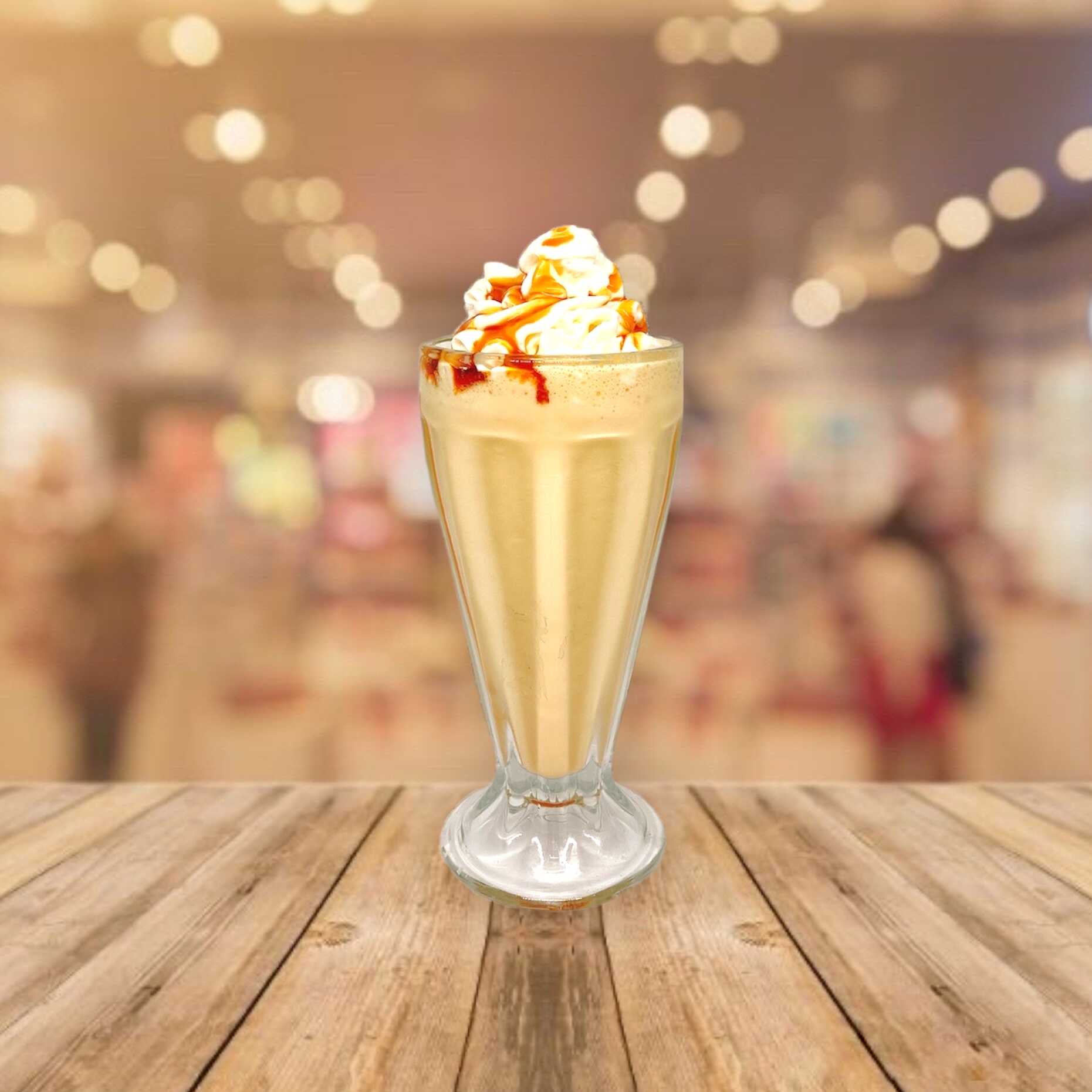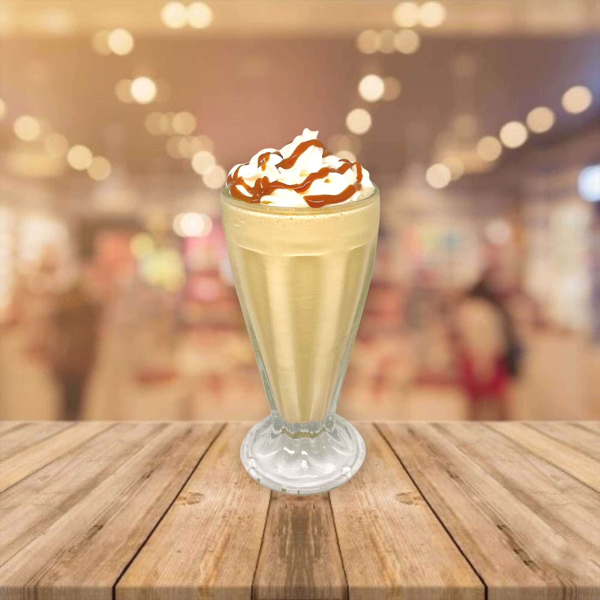 Milkshake con topping de salsa de dulce de leche en tamaño de 16oz.