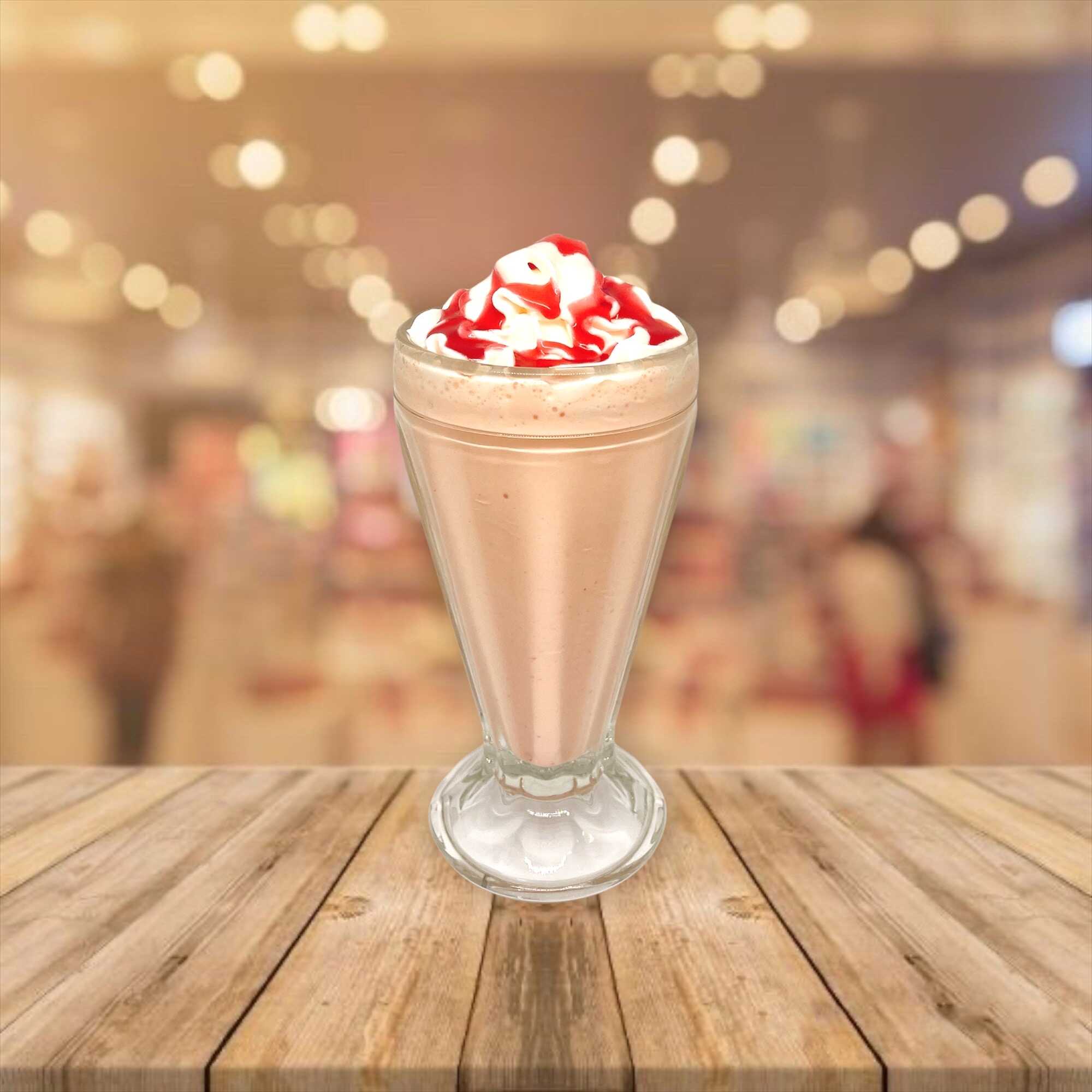 Milkshake con topping de salsa de fresa en tamaño de 16oz.