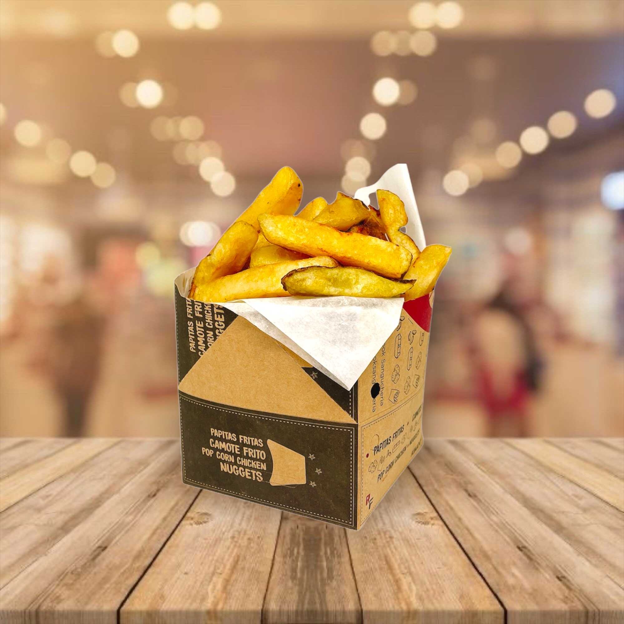 Papas fritas nativas en tamaño junior acompañadas de mayonesa y ají de pollería.