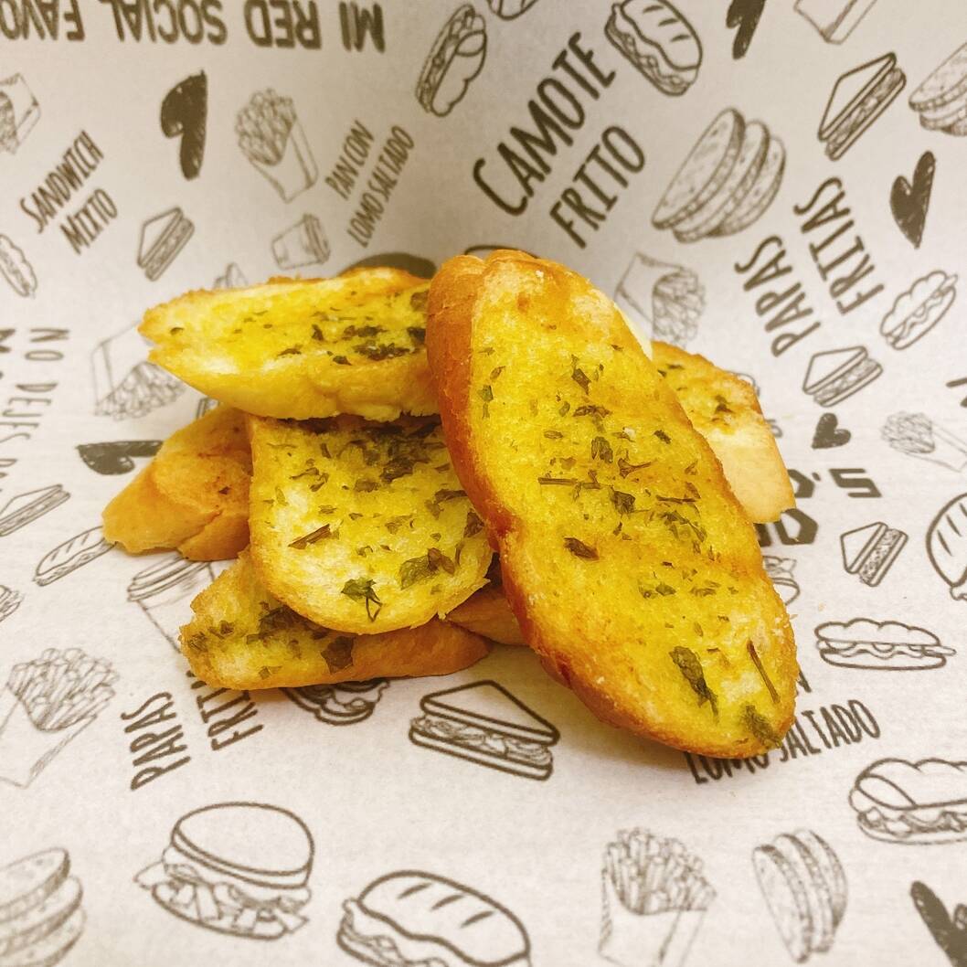 Sándwich con chicharrón de panceta de cerdo, camote frito y sarza criolla.