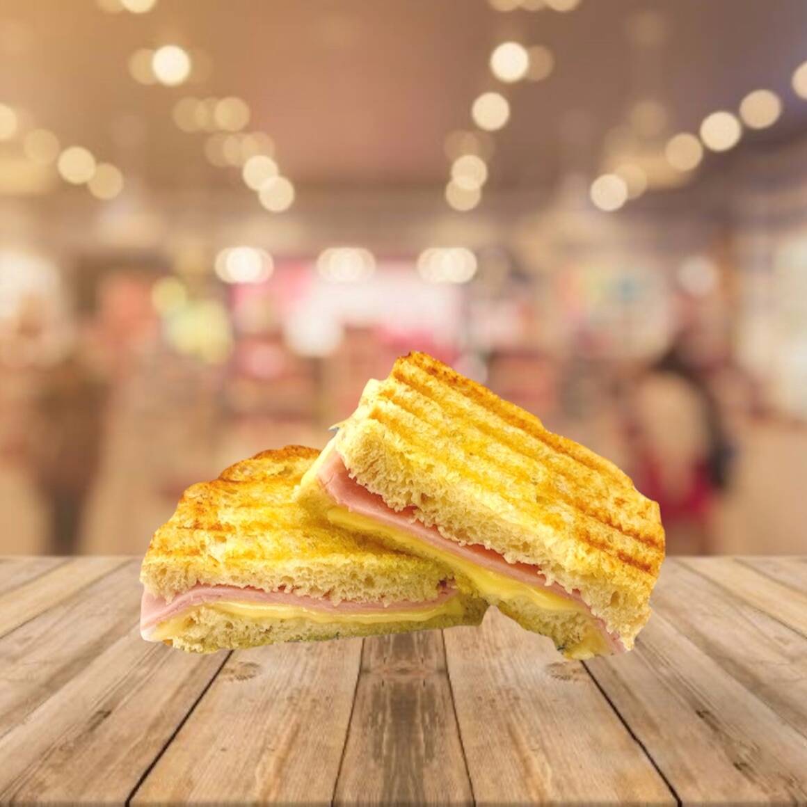 Sándwich con jamón inglés y queso gouda en pan campesino.