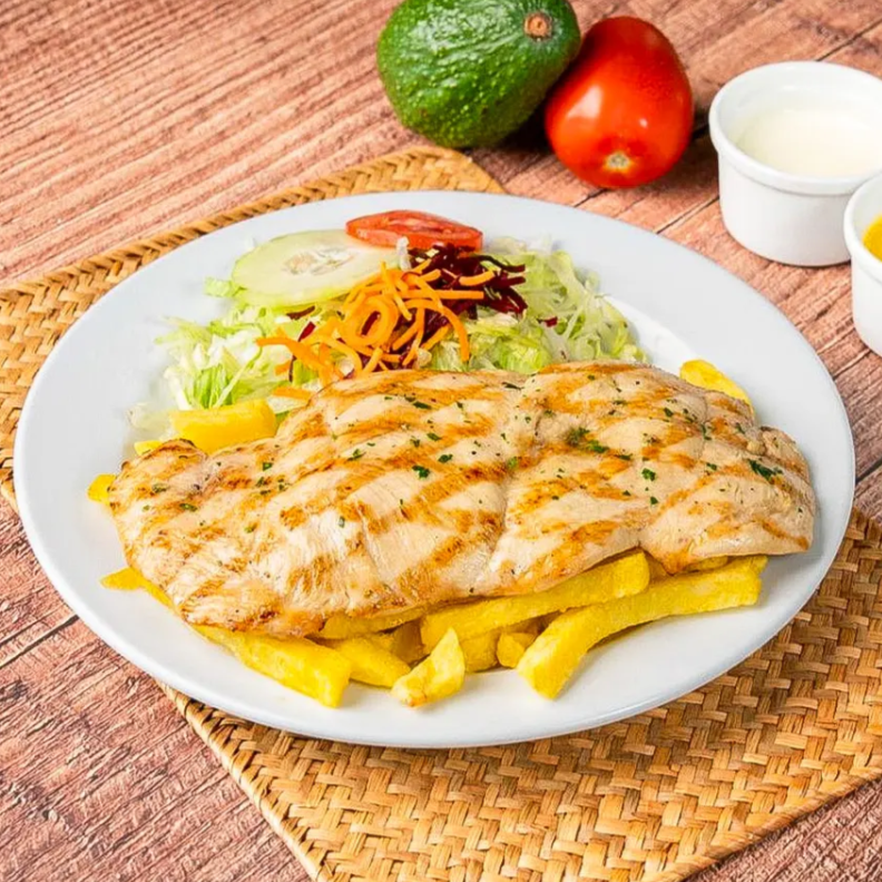 Pechuga Plancha con Papas + Ensalada + Pepsi o Chi