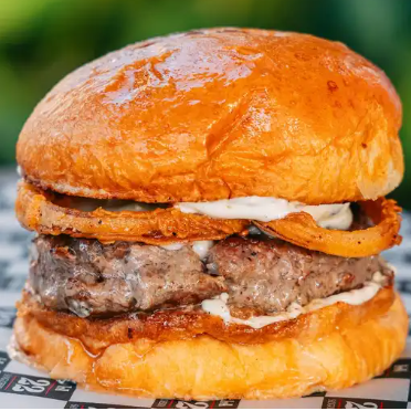 Carne premium, queso mozarella, tocino, bbq, onion rings, pan brioche, lechuga, tomate, mayo 22