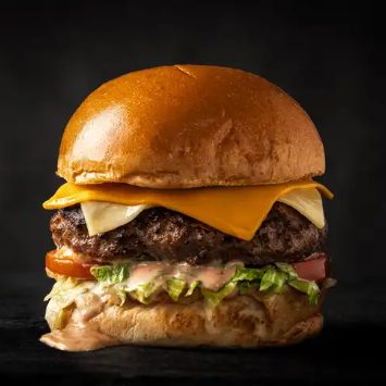 Pan brioche, carne angus 170g, mayonesa de la casa, lechuga, tomate, queso.