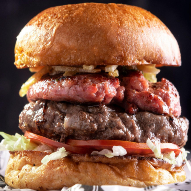 Carne premiun, chorizo parrillero, chimichurri, pan brioche, lechuga, tomate, mayo 22