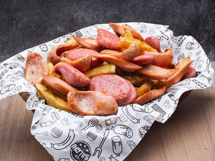 Exquisita mezcla de frankfurter, chorizo parrillero y chorizo de finas hierbas, acompañada de nuestras sabrosas papas peruanas.