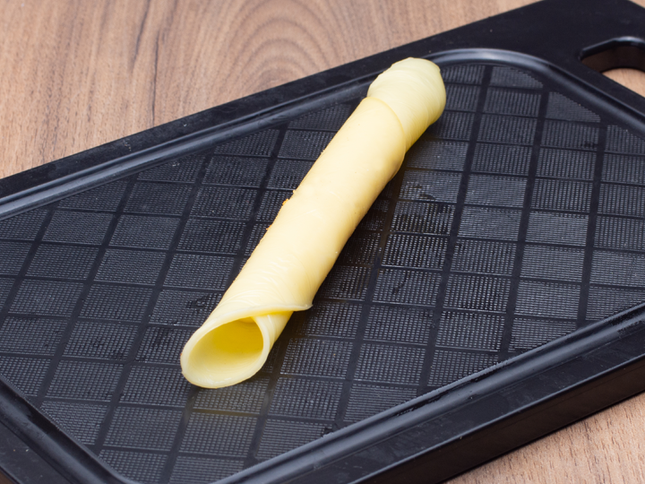 Pan de yema, hamburguesa de carne, queso edam, lechuga y tomate.