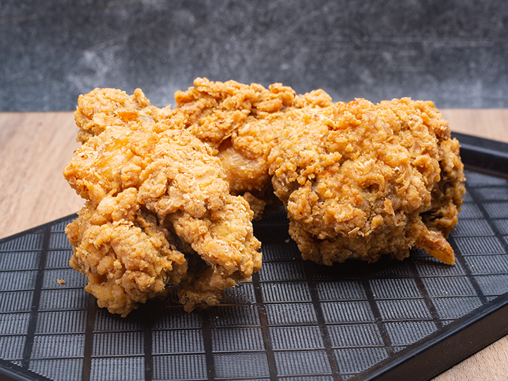 Delicioso chicharrón de pechuga de pollo sazonado con la receta de la casa y acompañado de nuestras sabrosas papas peruanas.