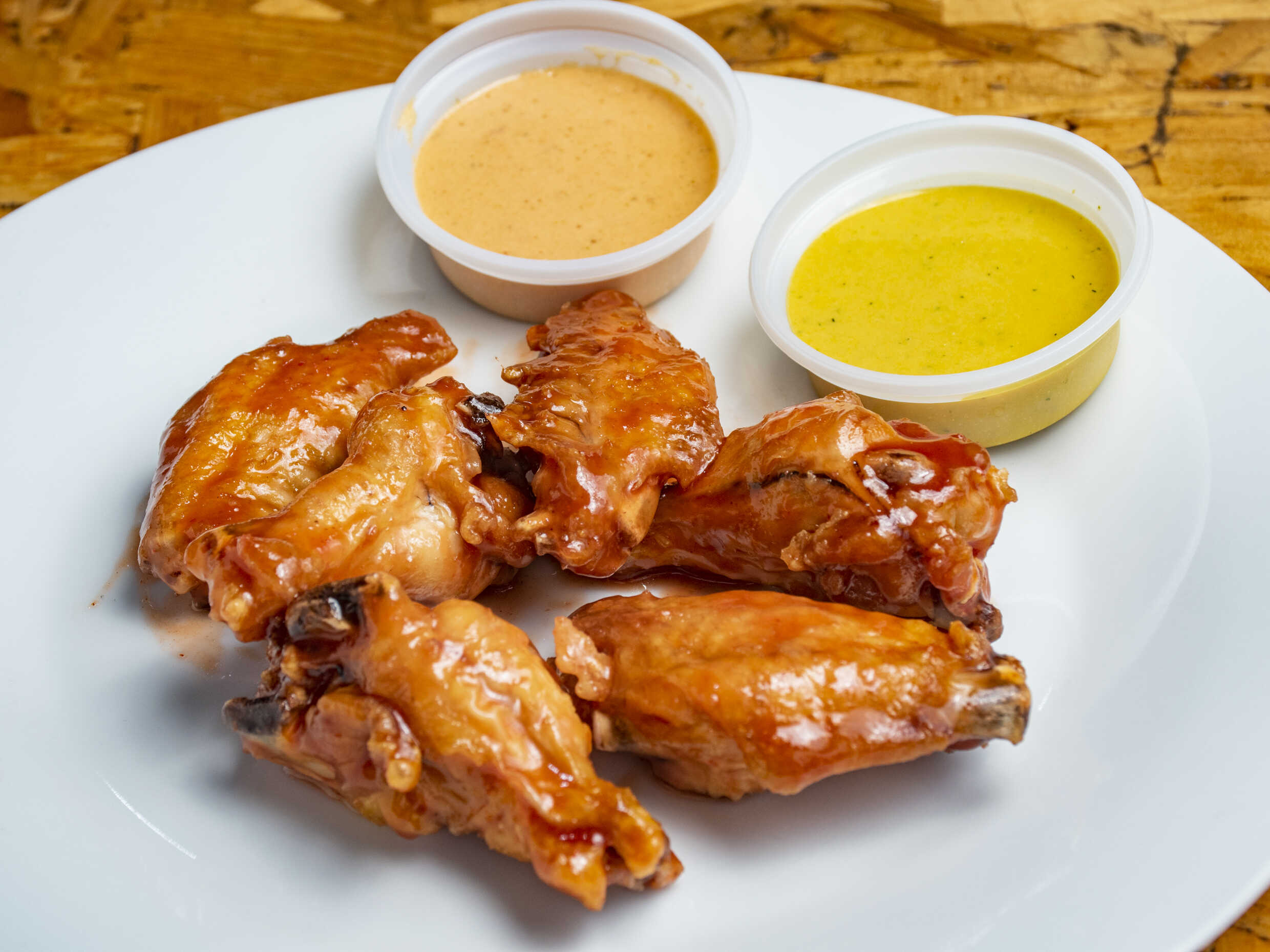 6 Alitas de Pollo bañadas una salsa a tu elección entre BBQ, BBQ Picante y Buffalo