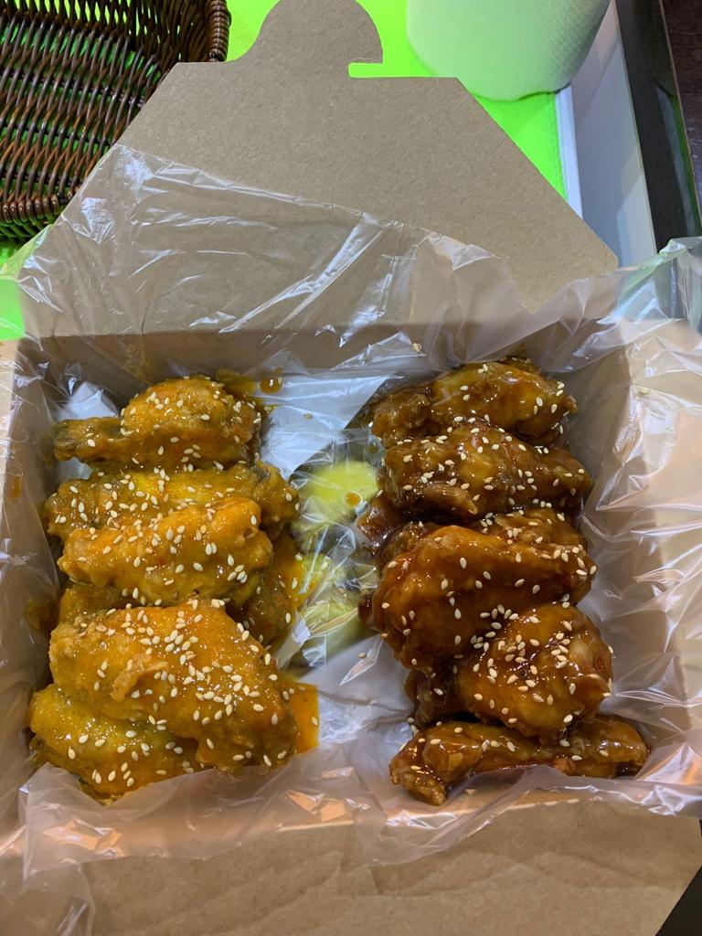 12 Alitas con 2 salsas a elegir, papas nativas y gaseosa gratis.