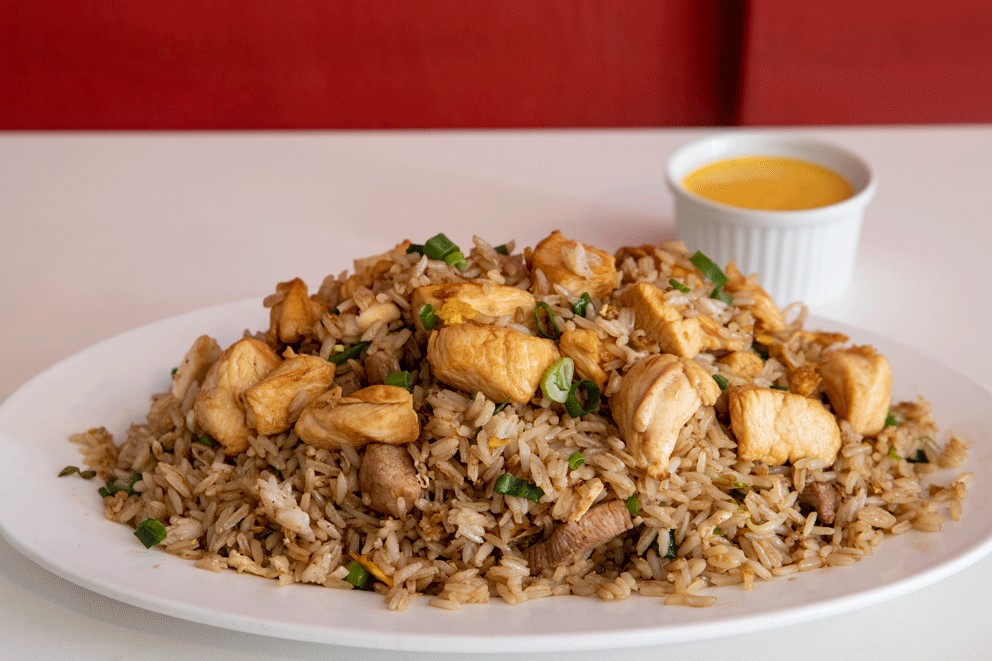 120 g De pechuga de pollo, arroz, papas nativas y gratis gaseosa.