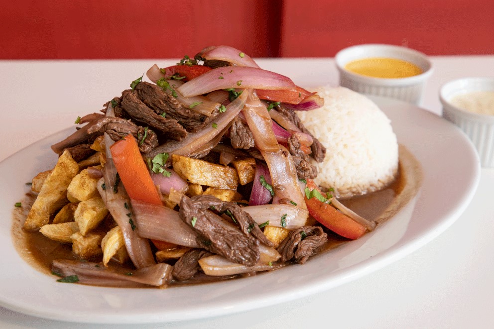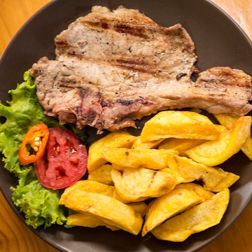 250 g De cerdo, papas nativas, arroz y gaseosa gratis.
