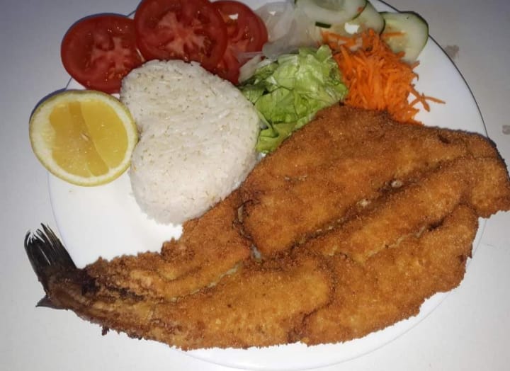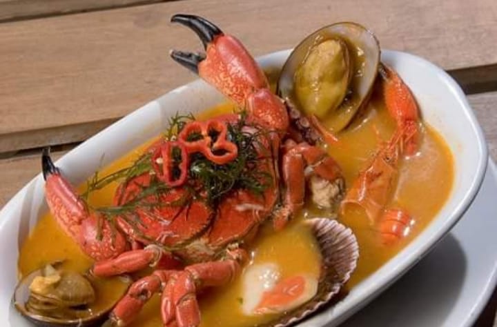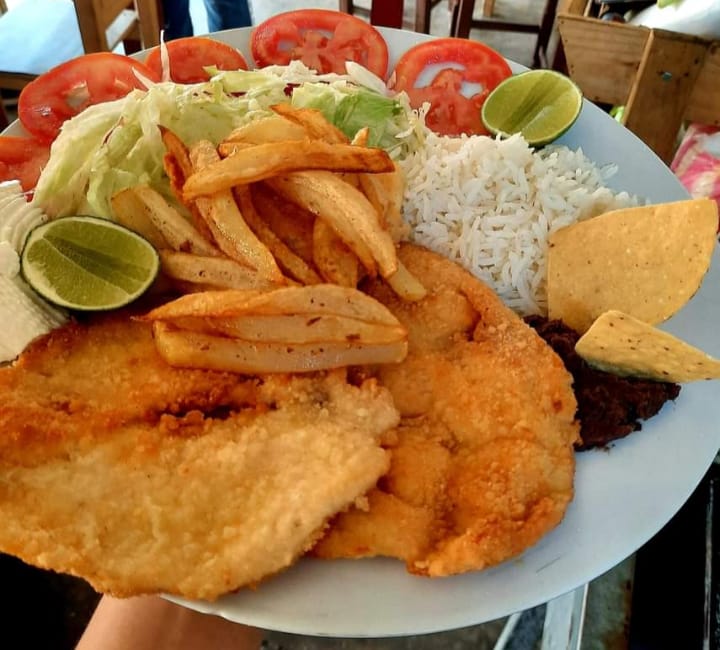 Arroz con Marisco + Chicharron + Causa de Pollo + Leche de Tigre y Ceviche de pescado