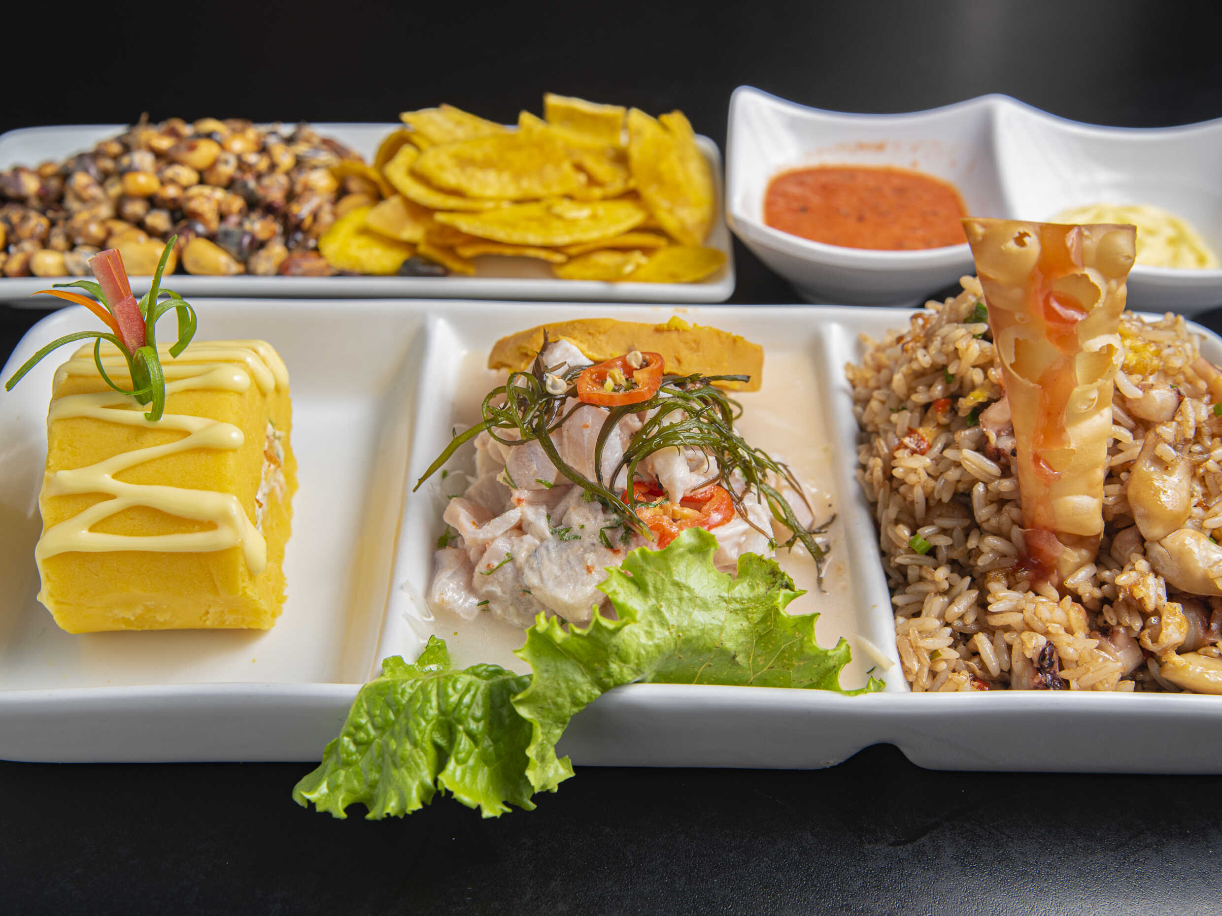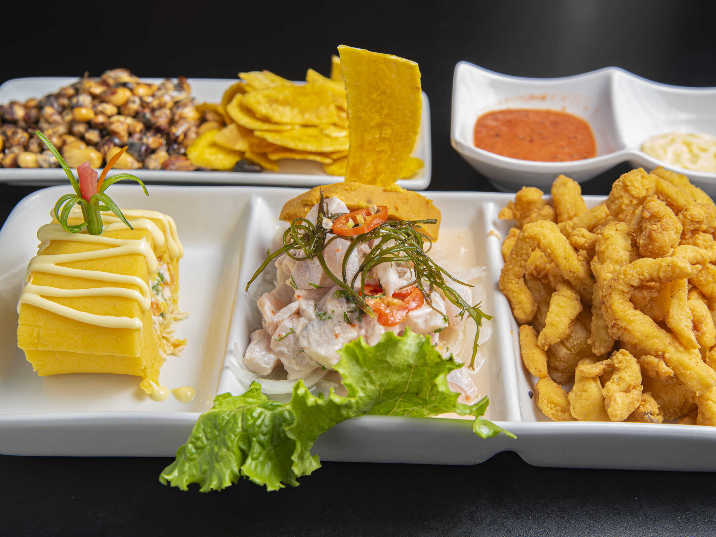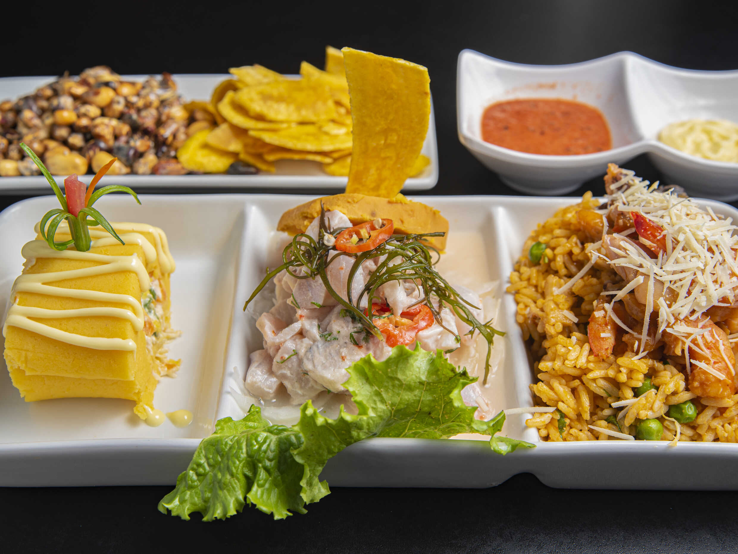 Ceviche con Causa y Arroz con Mariscos Arrisotado