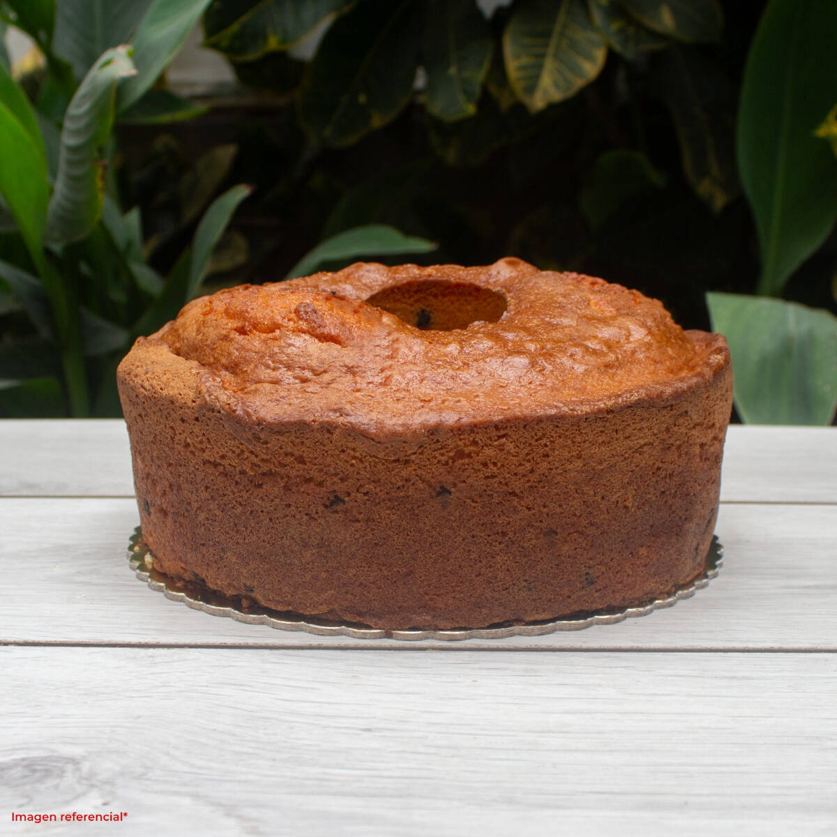 Keke de vainilla grande con chispas de chocolate. Rinde para 10 a 12 porciones aproximadamente.