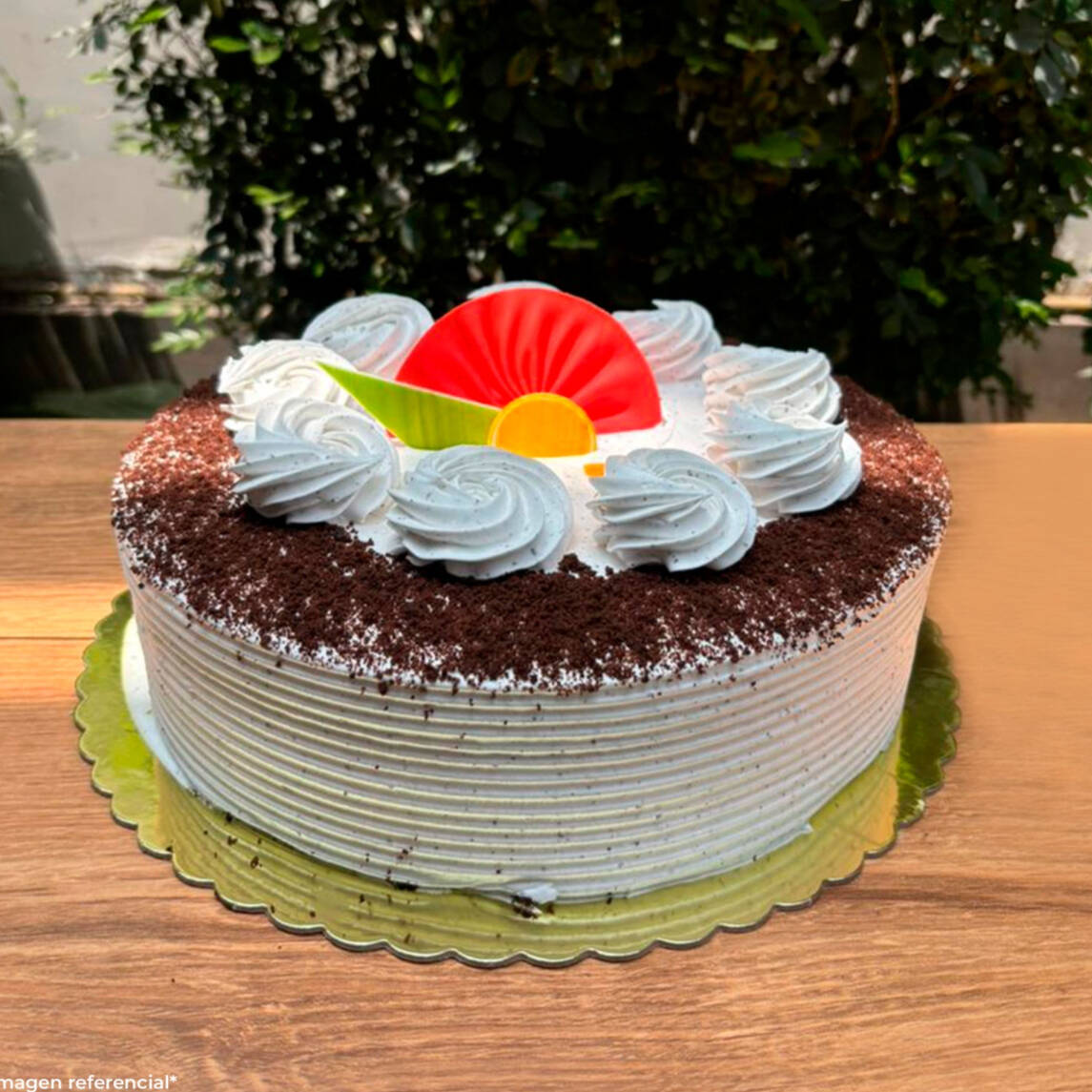 Keke de chocolate premium y keke de vainilla con doble relleno de crema sublime para 15 porciones aproximadamente.