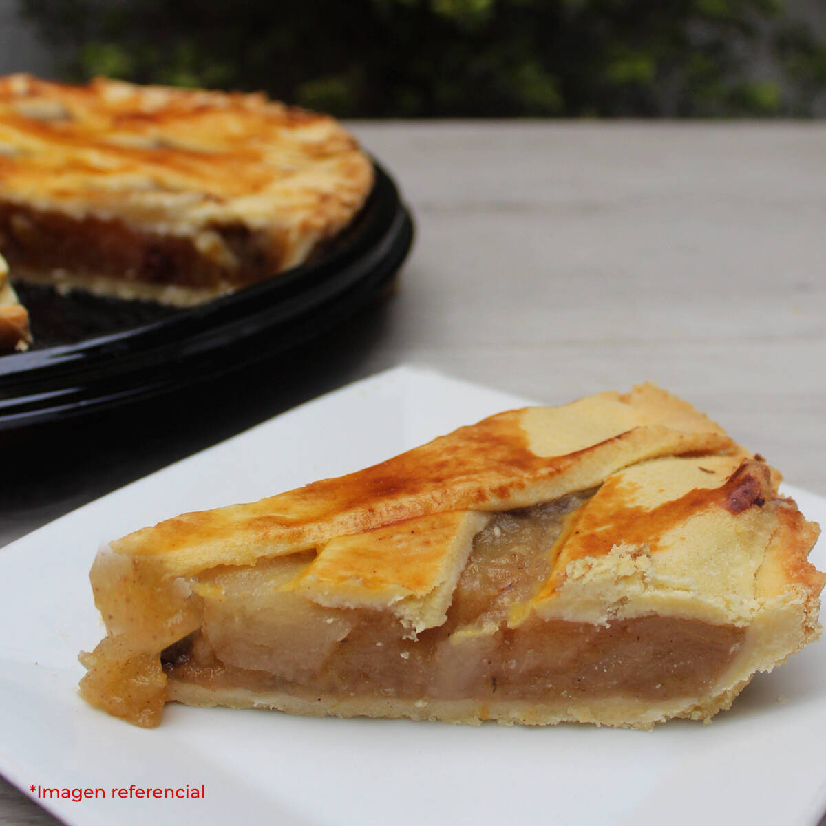 Base de masa suave de mantequilla con relleno de compota de manzana, pasas y canela. D22 para 15 porciones aproximadamente, (imagen referencial).
