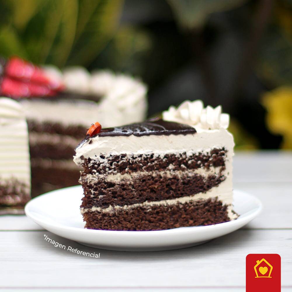 Delicioso keke de chocolate humedecido en almíbar de café, relleno de cremoso de chocolate y crema de moka.