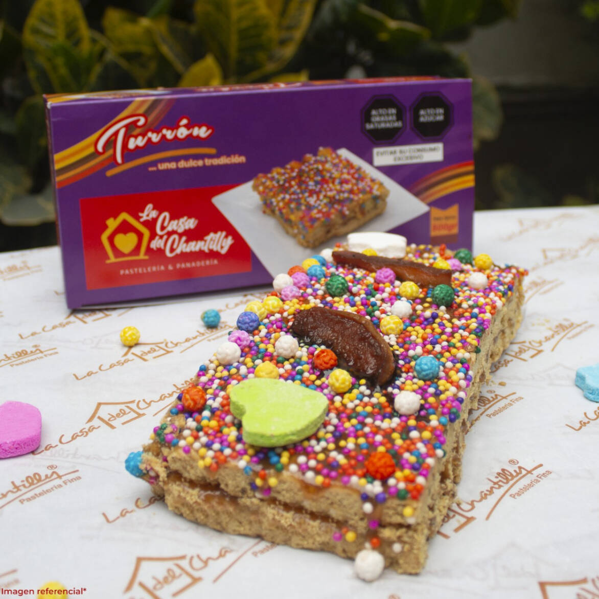 Crocante masita con relleno de manjar a la olla y decorado con trozito de alfajor.