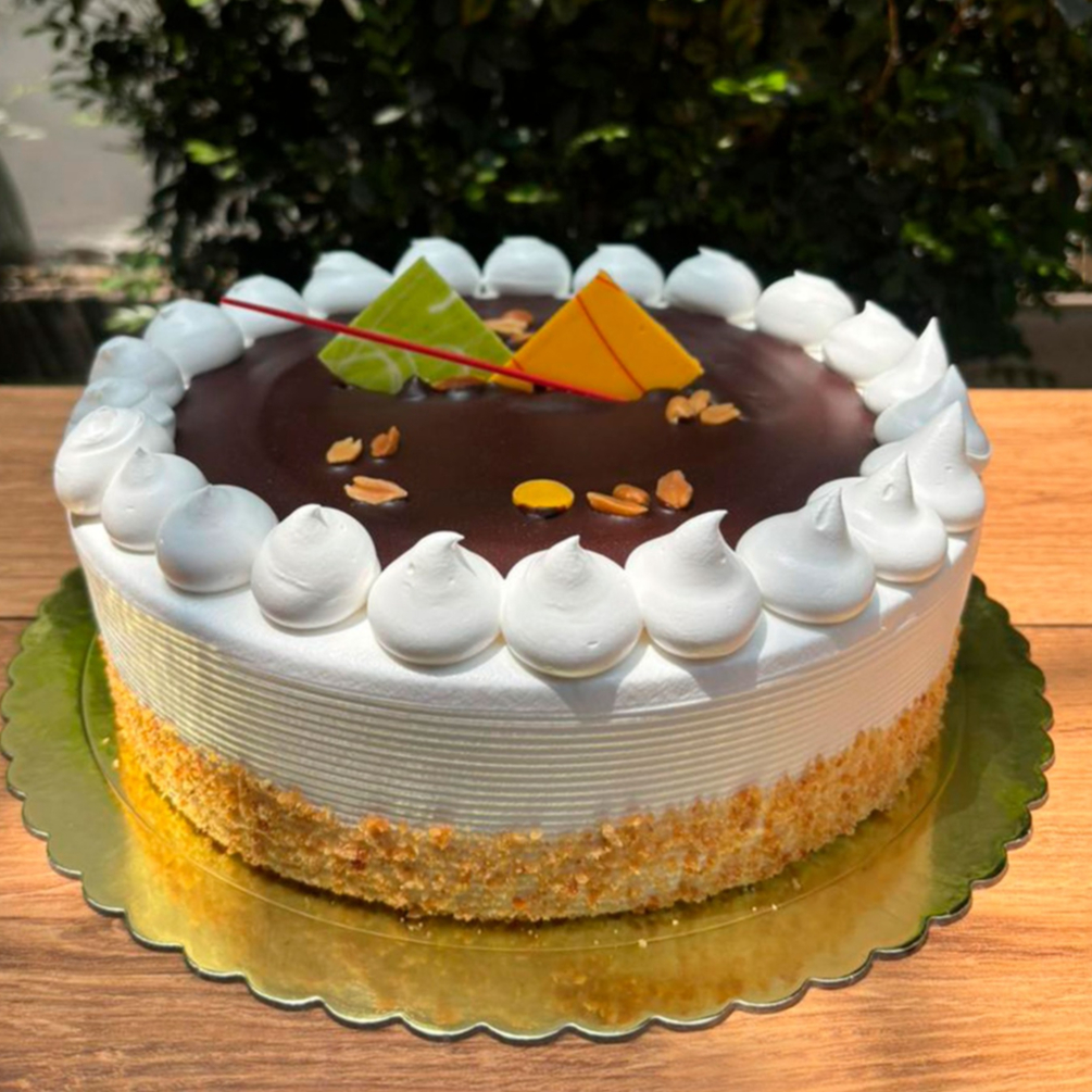 Keke de chocolate premium y keke de vainilla con doble relleno de crema Sublime, 26 de diámetro y rinde para 25 porciones aproximadamente.
