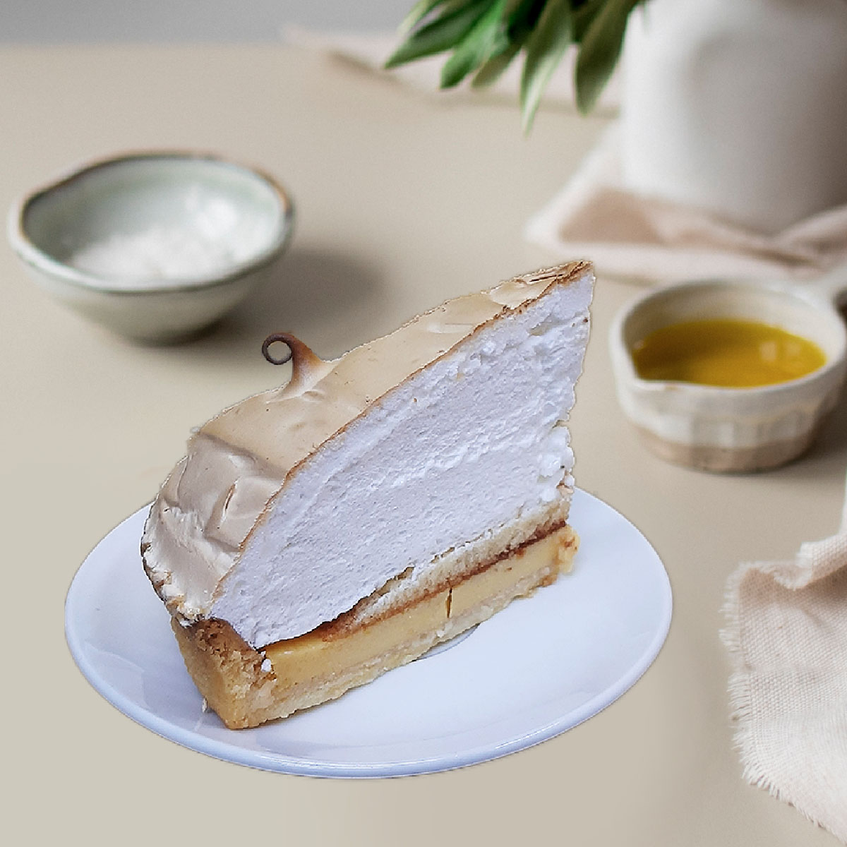 Crocante masa rellena con crema de limón, cubierto con merengue italiano.