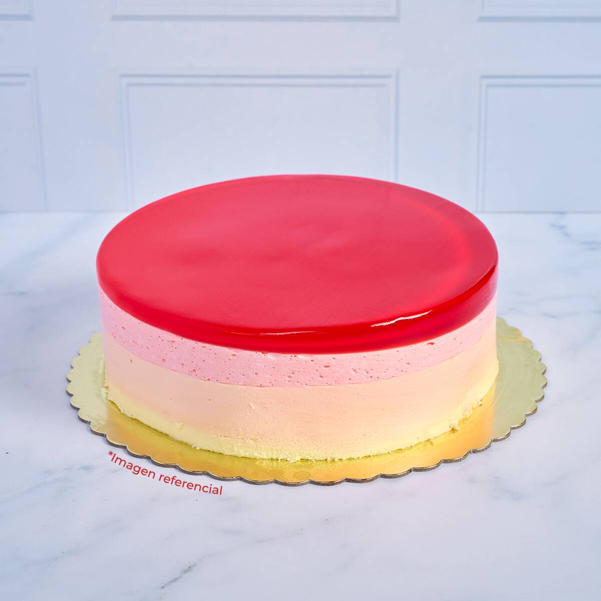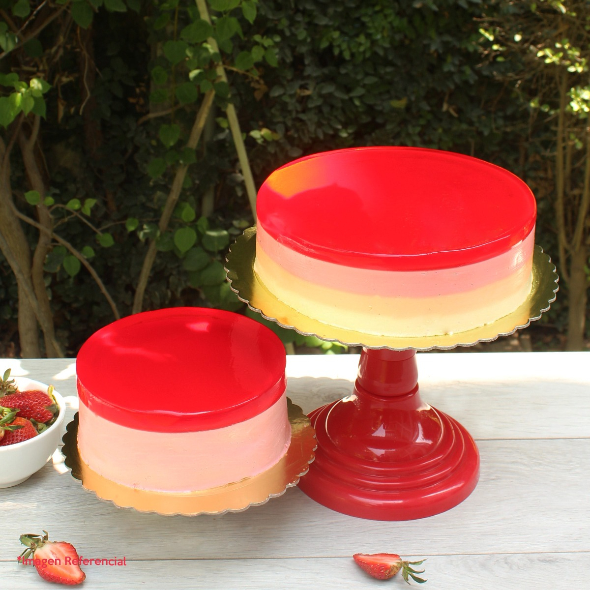 Delicioso mousse de fresa, piña y naranja con relleno de keke de vainilla. De 22 de diámetro, rinde para 15 porciones aproximadamente.