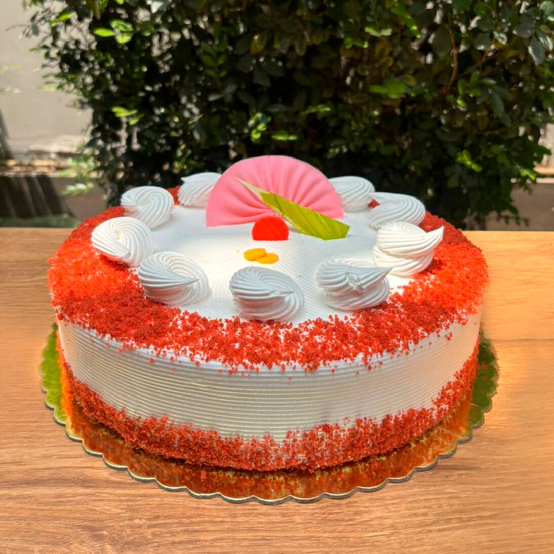 Keke red velvet y keke de vainilla con doble relleno de crema de fresa, humedecido en jarabe y tres leches, 18 de diametro y rinde para 8 porciones aproximadamente.