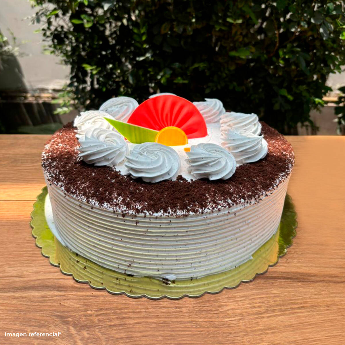 Keke de chocolate premium y keke de vainilla con doble relleno de crema Sublime, 26 de diámetro y rinde para 25 porciones aproximadamente.