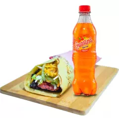 1 Tortilla, queso cheddar y 100 gramos de pollo deshilachado. + chicha pequeña