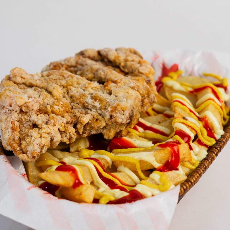 Pecho broaster, una pieza acompañada de papas fritas y crocantes 🍗🍟