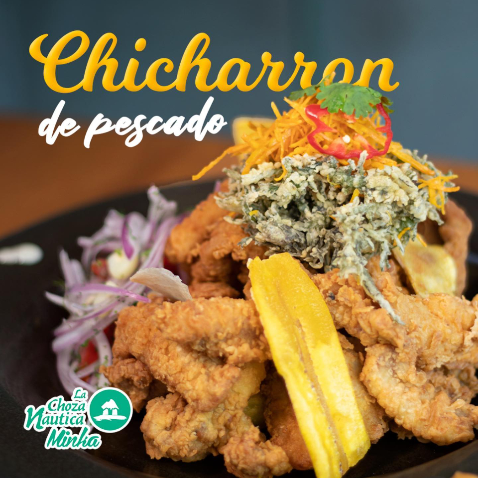 Crujientes trozos de pescado marinado con nuestra base de la casa chozera y Acompañado de papas fritas.