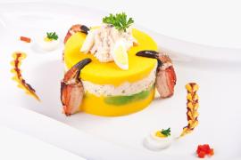 Causa a base de papa amarilla, rellenas de pulpa de cangrejo.