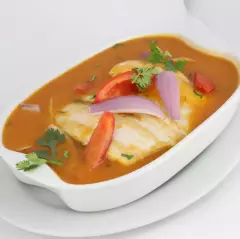 Pescado en trozos a base de tipo de ajíes, ají amarillo, ají colorado y ají amarillo seco.