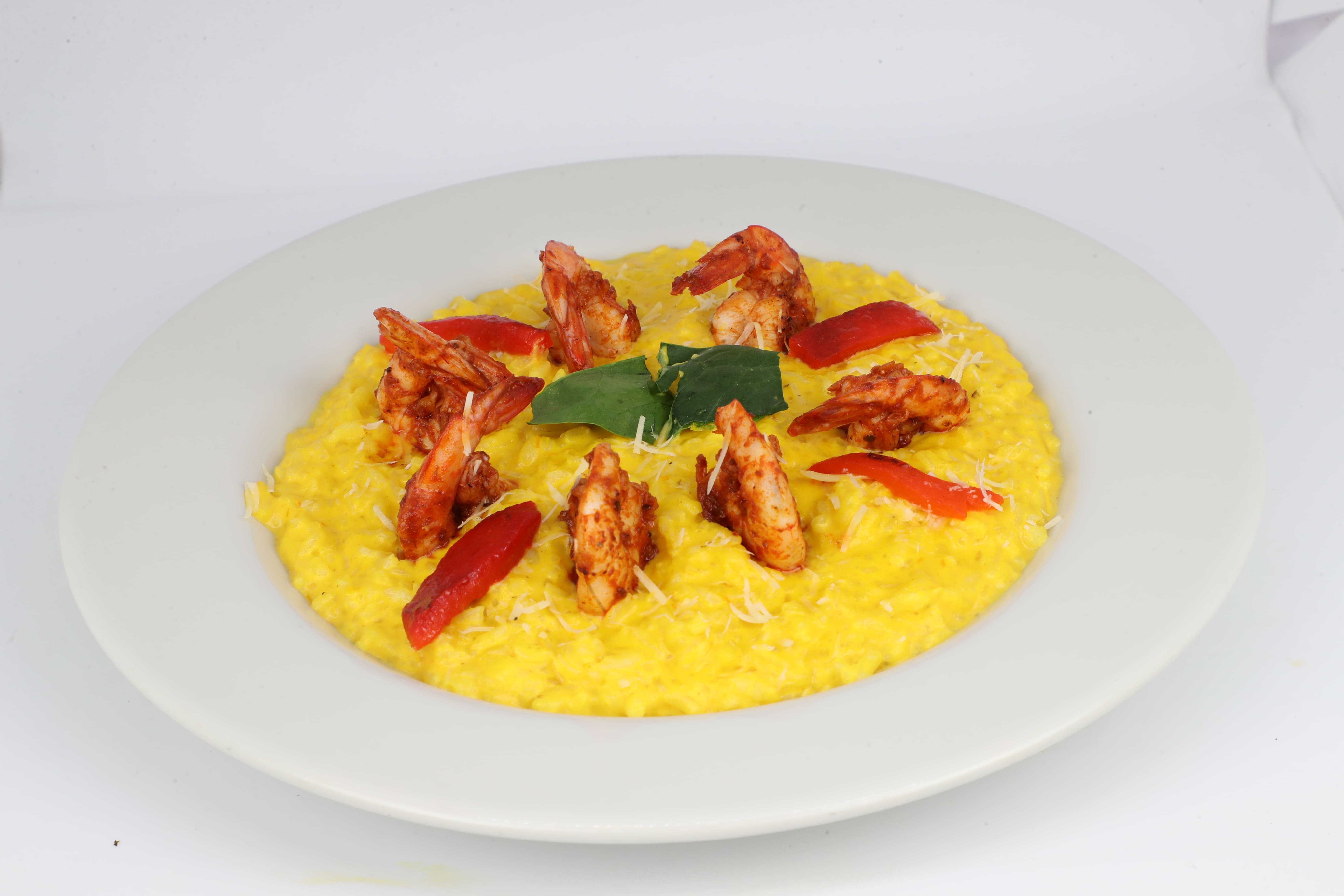Arroz graneado con chicha de jora y delicada salsa bechamel con mariscos.