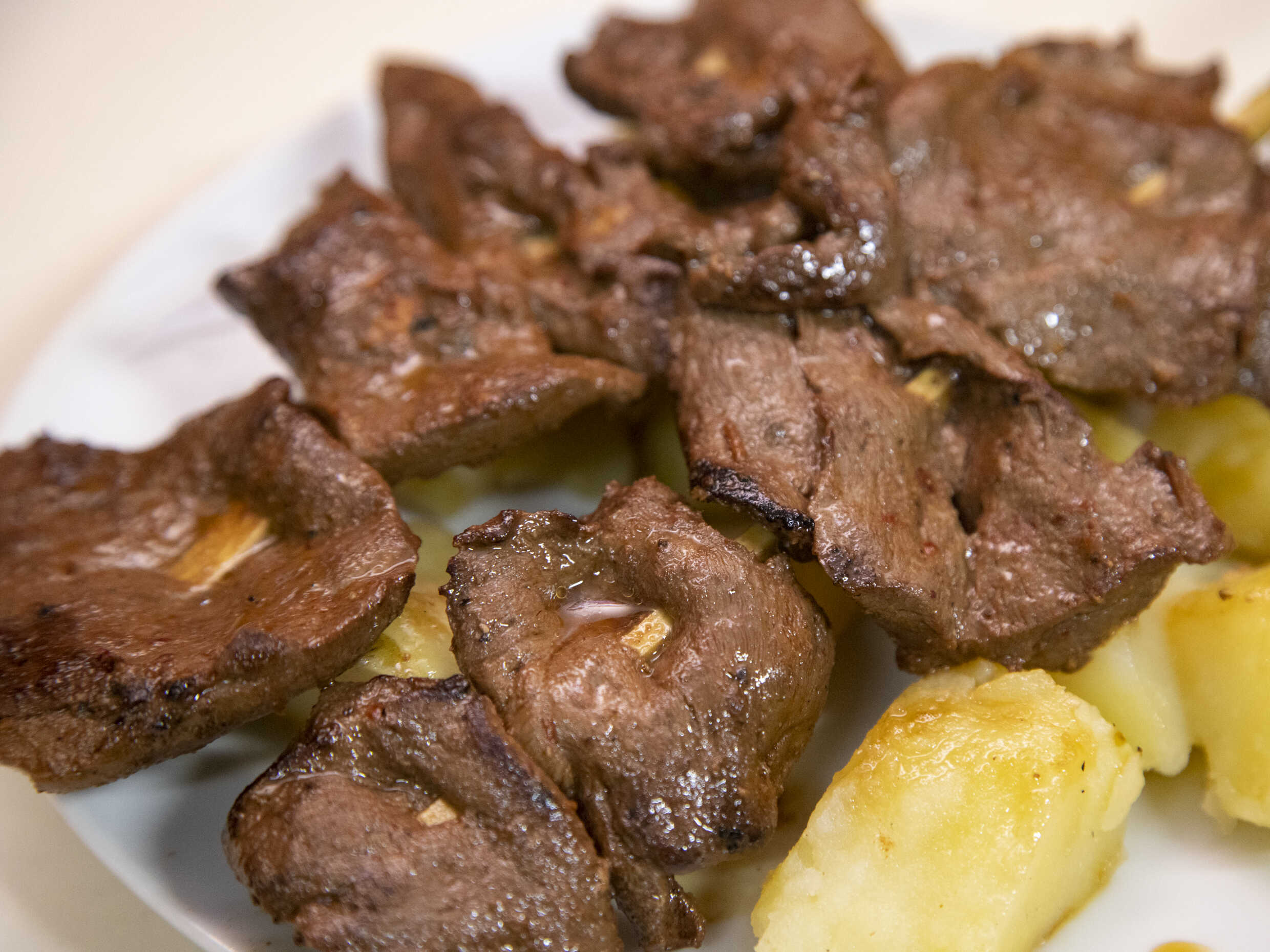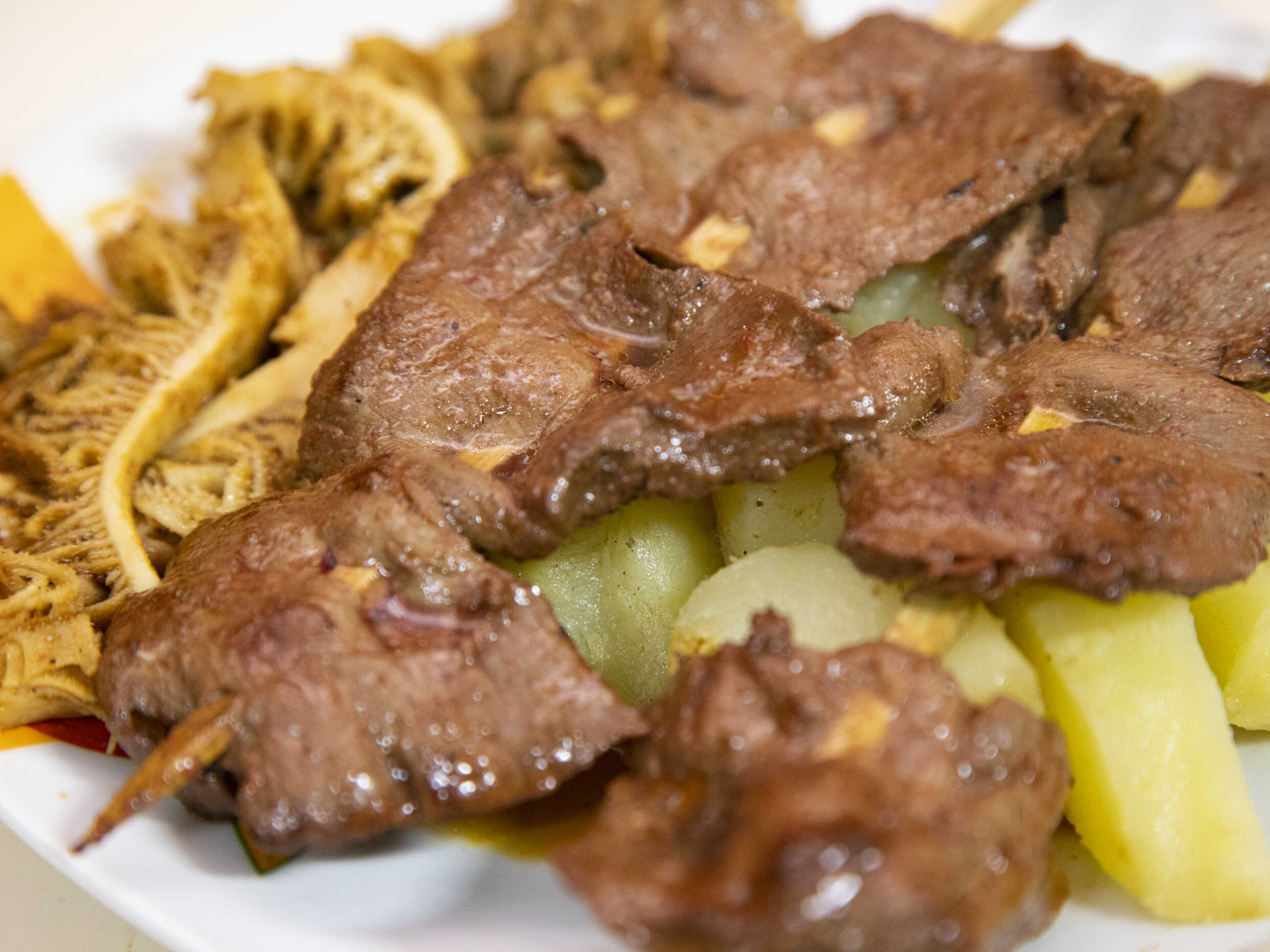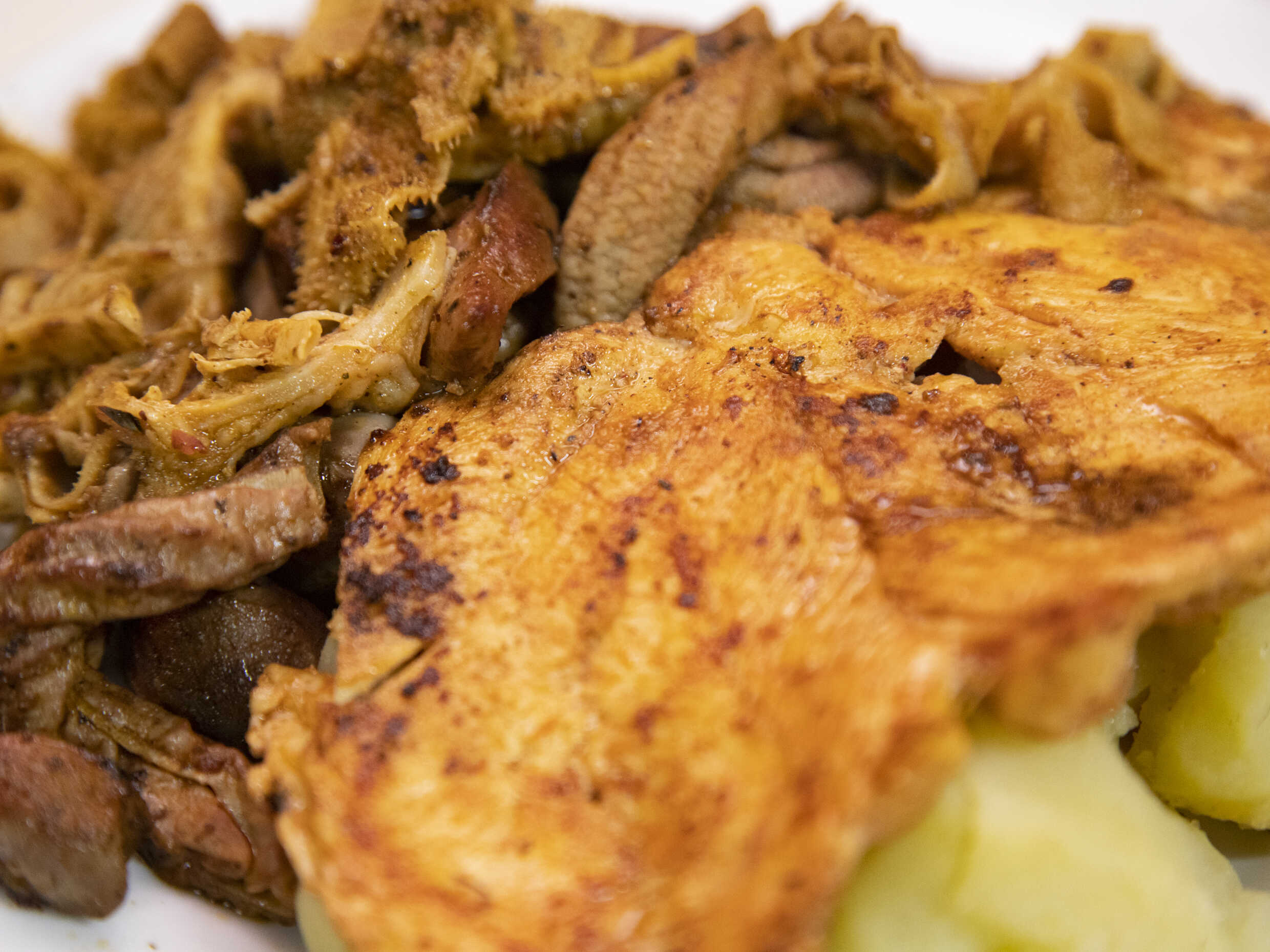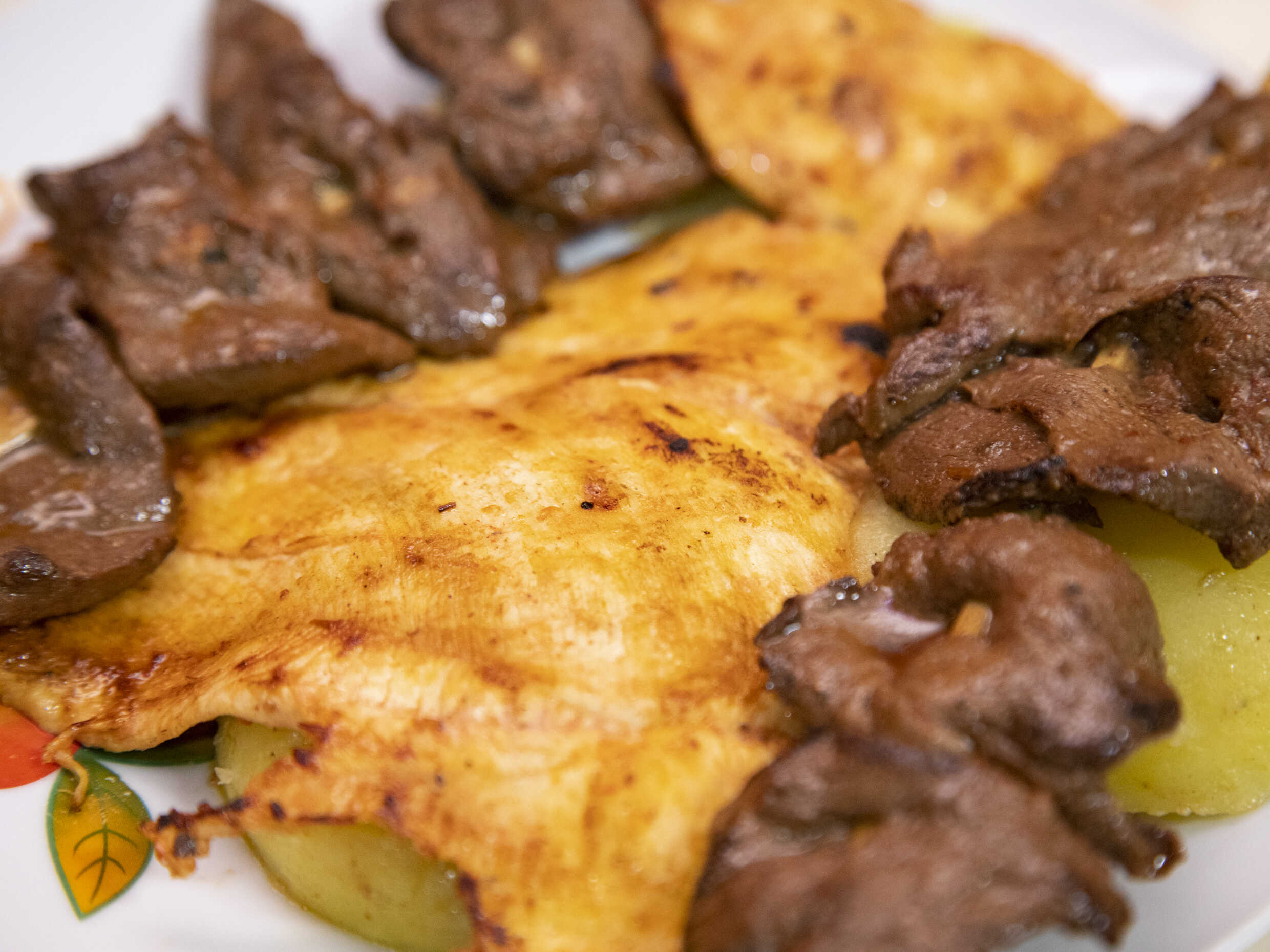 Combinado de rachi, pancita, molleja y papa.