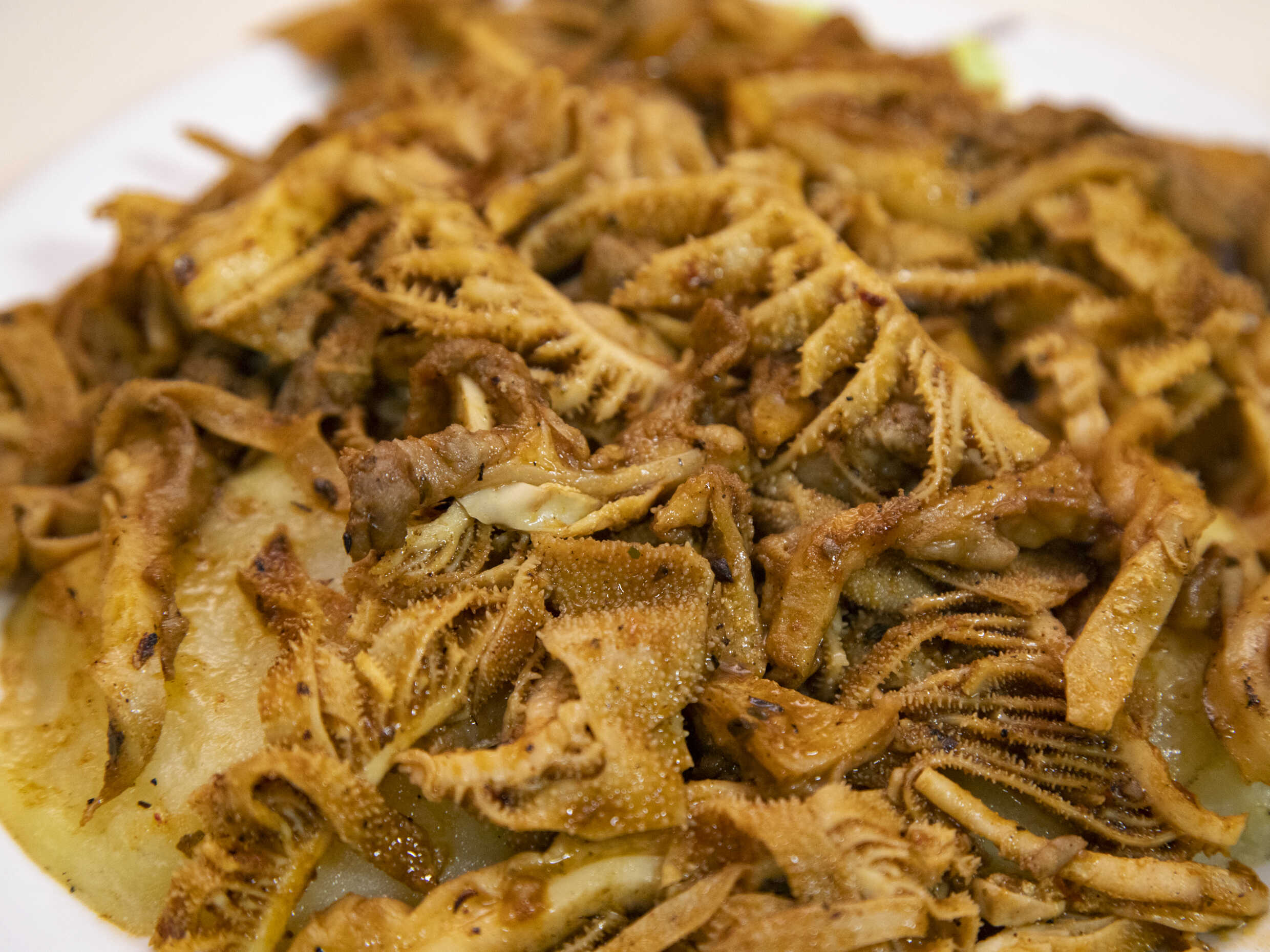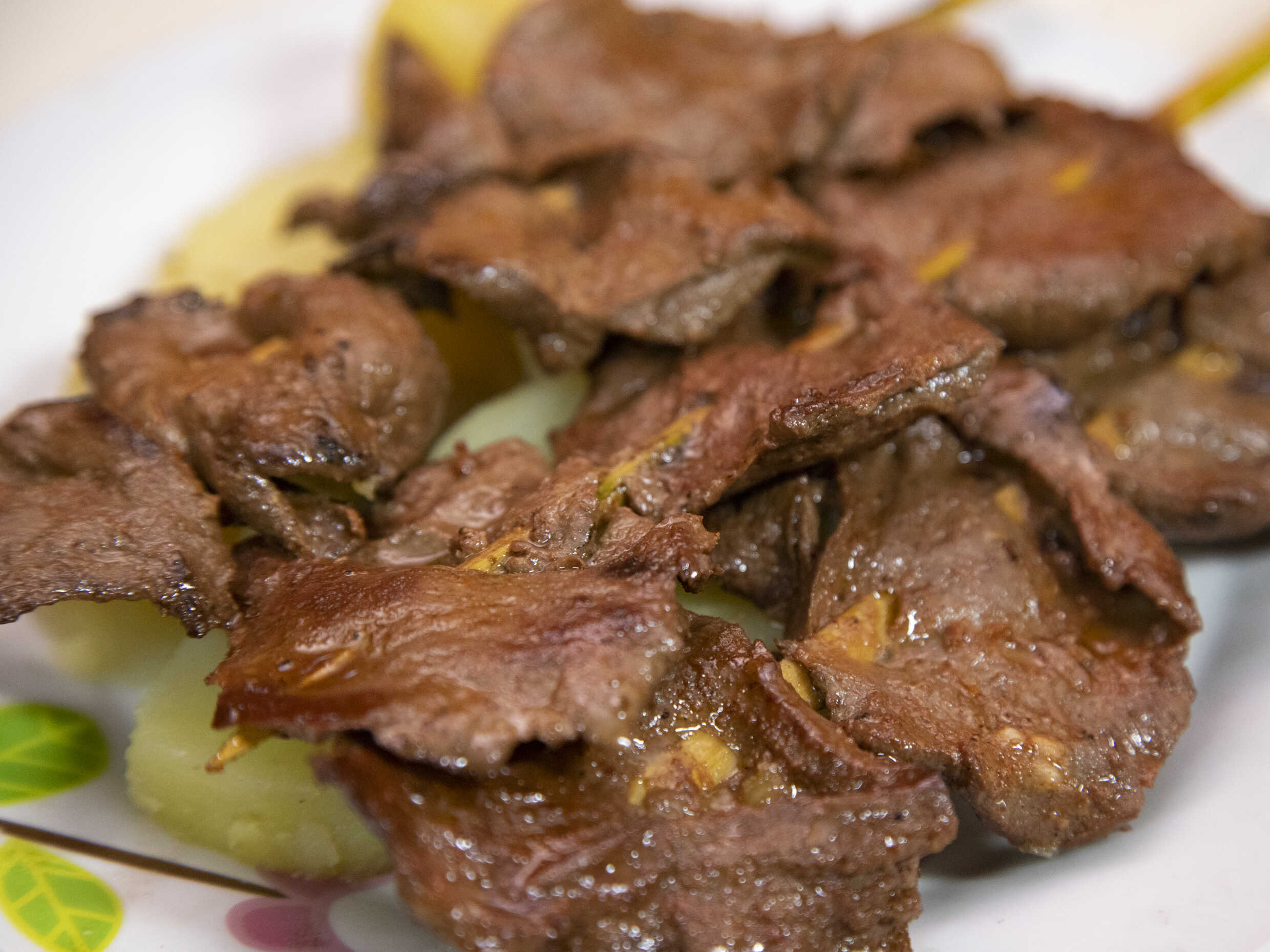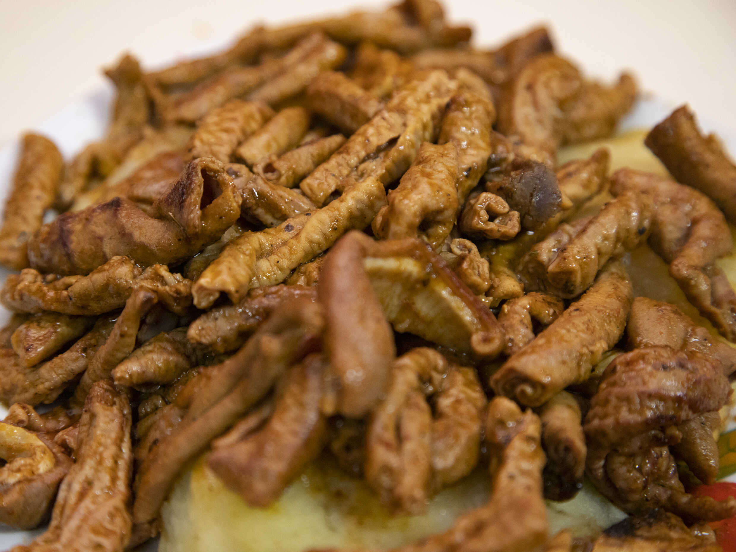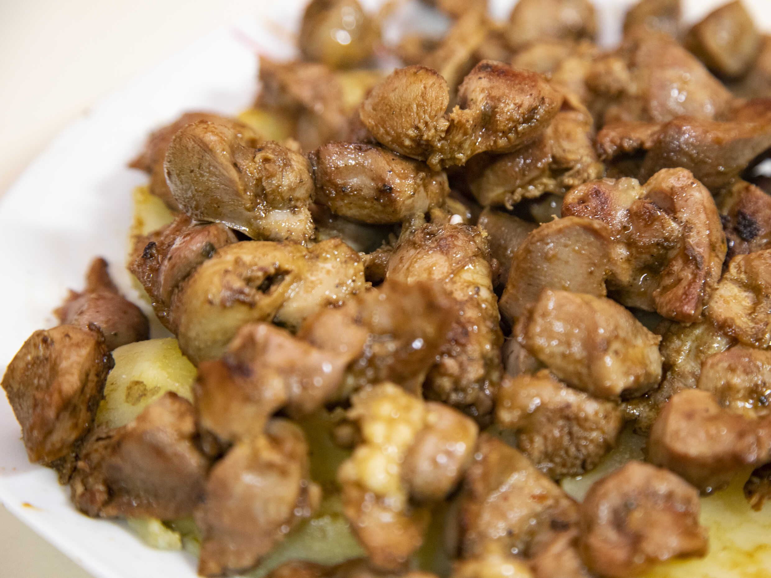 Combinado de rachi, pancita, molleja y papa.
