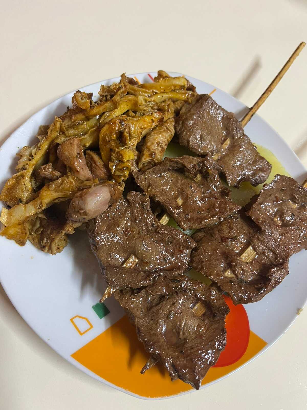 2 Palitos de Anticucho, Choncholí, Rachi y Molleja