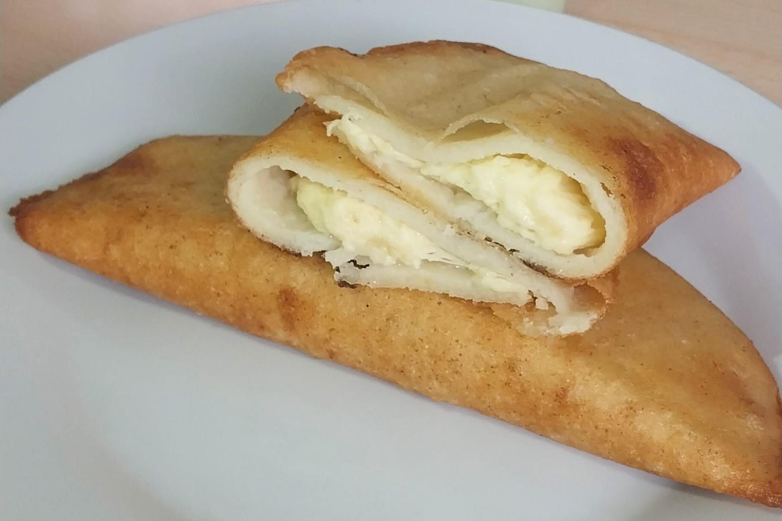 Empanada de 19 cm aprox. Rellena de queso fresco y plátano frito