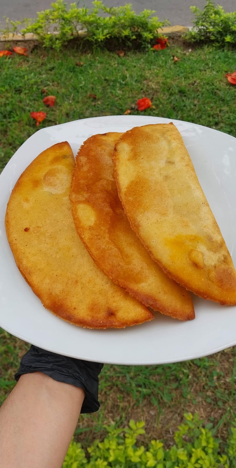 Empanada de 19 cm aprox. Rellena de queso fresco y frijol negro