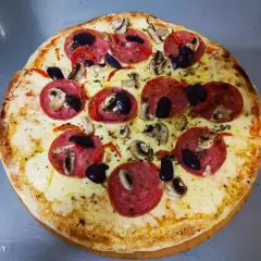 Ingredientes: salsa de tomate, queso mozzarella, champiñones, pimiento, aceituna y tomate natural.