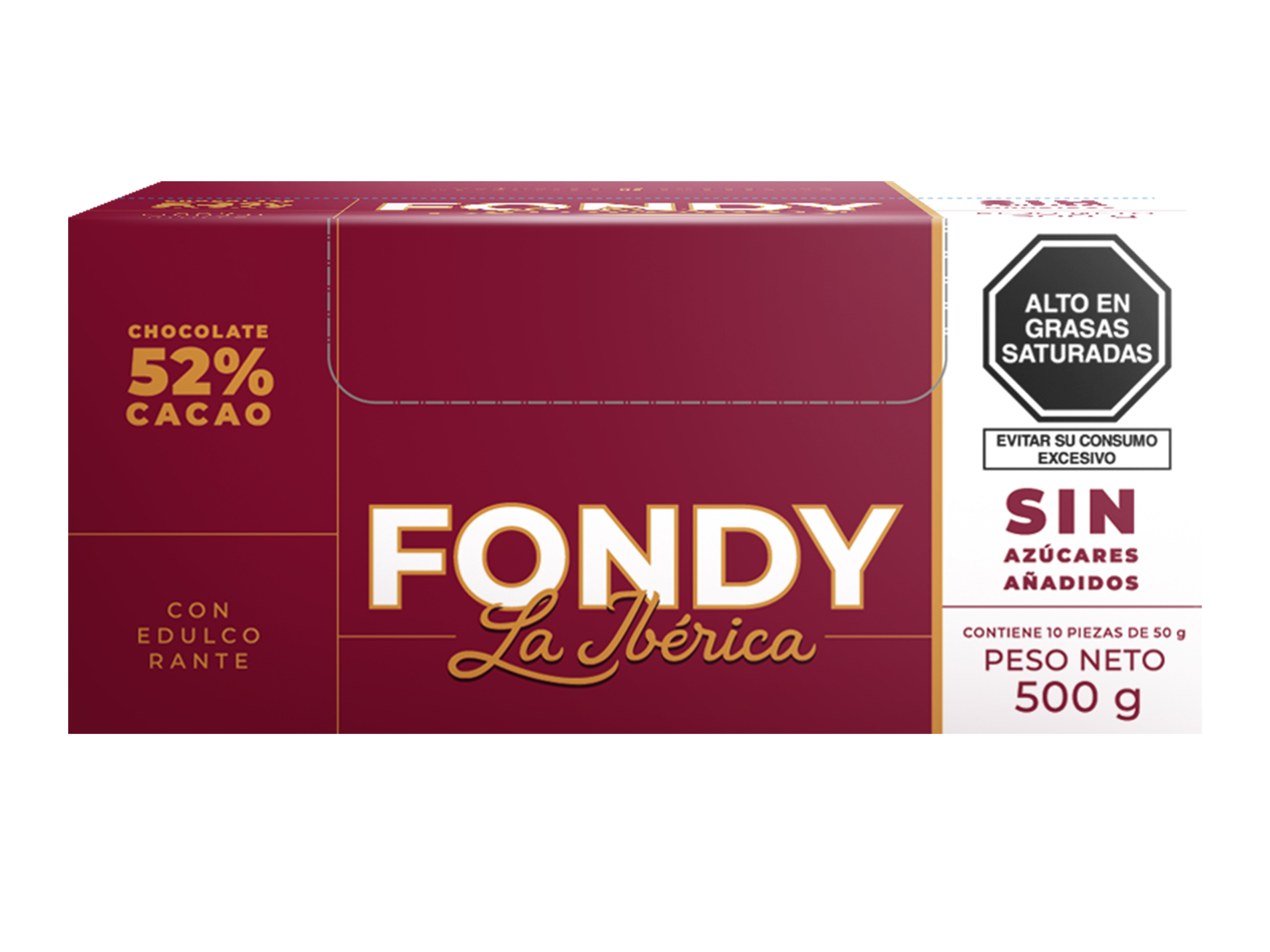 Barra Fondy La Ibérica sin Azúcares 50 g 10 Piezas
