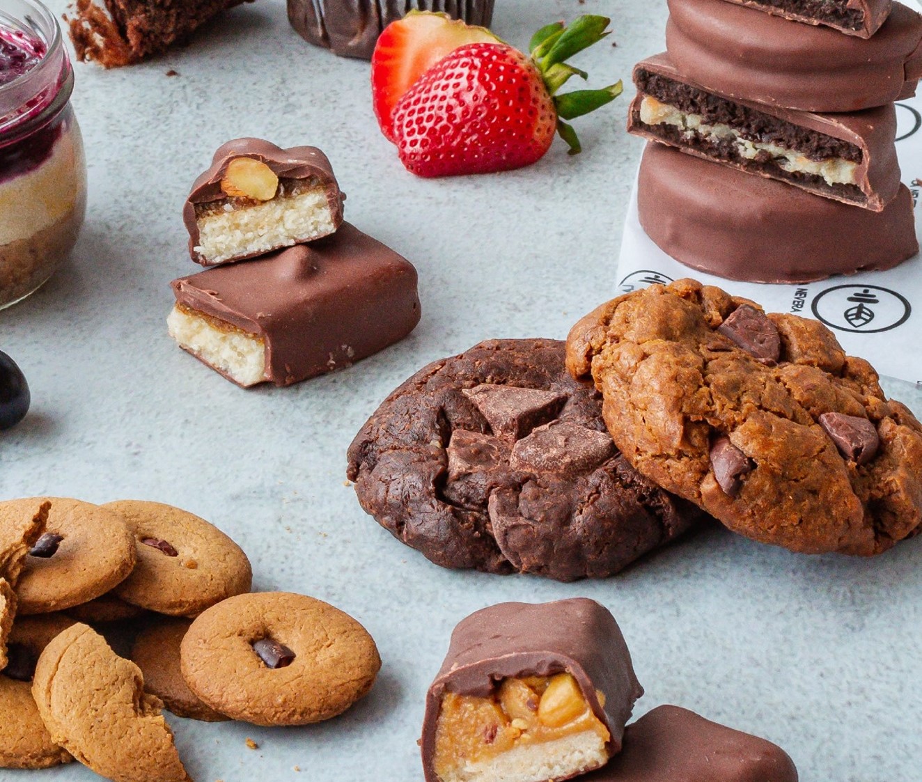 Contiene 1 brownie vegano, 1 snick fit y 1 galleta de avena.