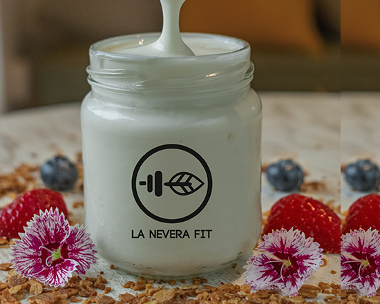 Nuestra versión saludable del tres leches, elaborado con harina integral, leche descremada y cubierta con nuestro yogurt griego. Endulzado con Stevia y panela.