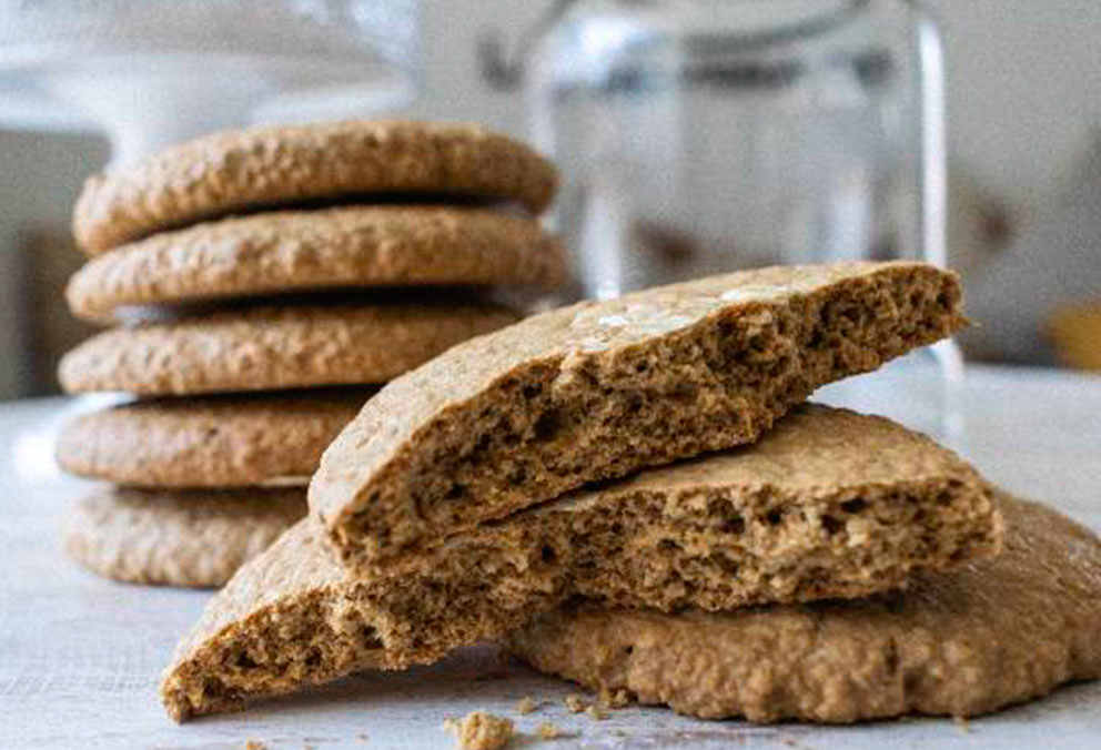 Una contundente y rica galleta de avena endulzada con panela.